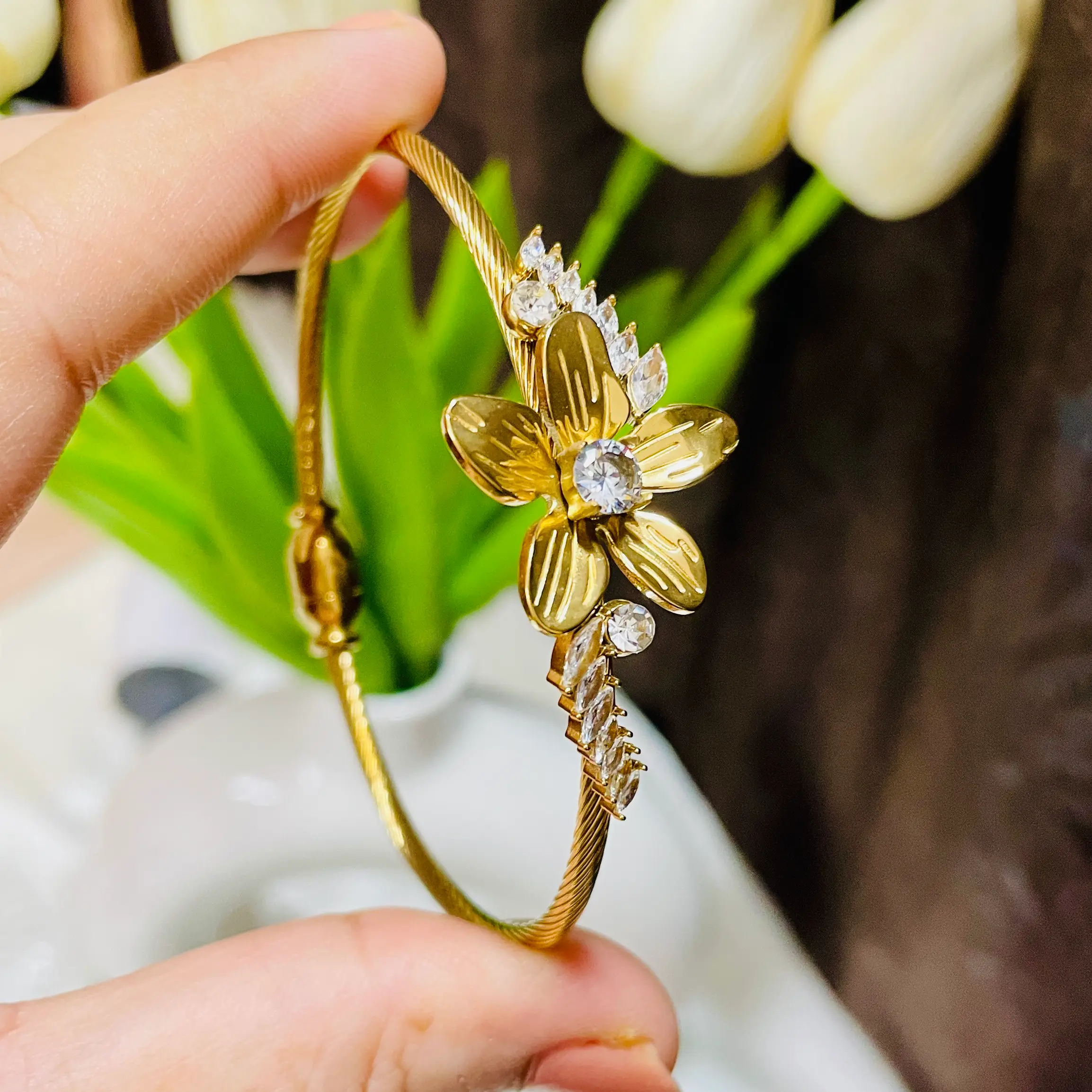 Bloom Spark Bangle Bracelet | Anti Tarnish | Waterproof | Hypoallergenic | Daily Wear | Openable