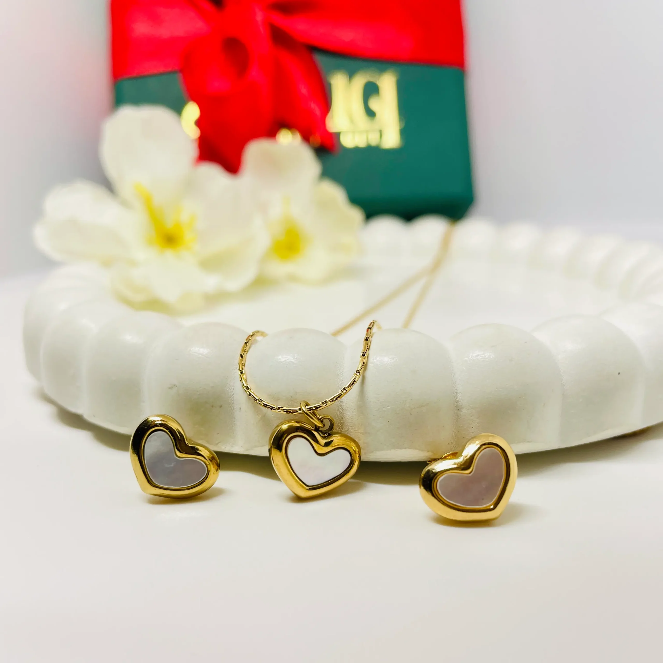 Cherished Heart Necklace Set | Stainless Steel | Anti Tarnish | 18K Gold Plated | Waterproof