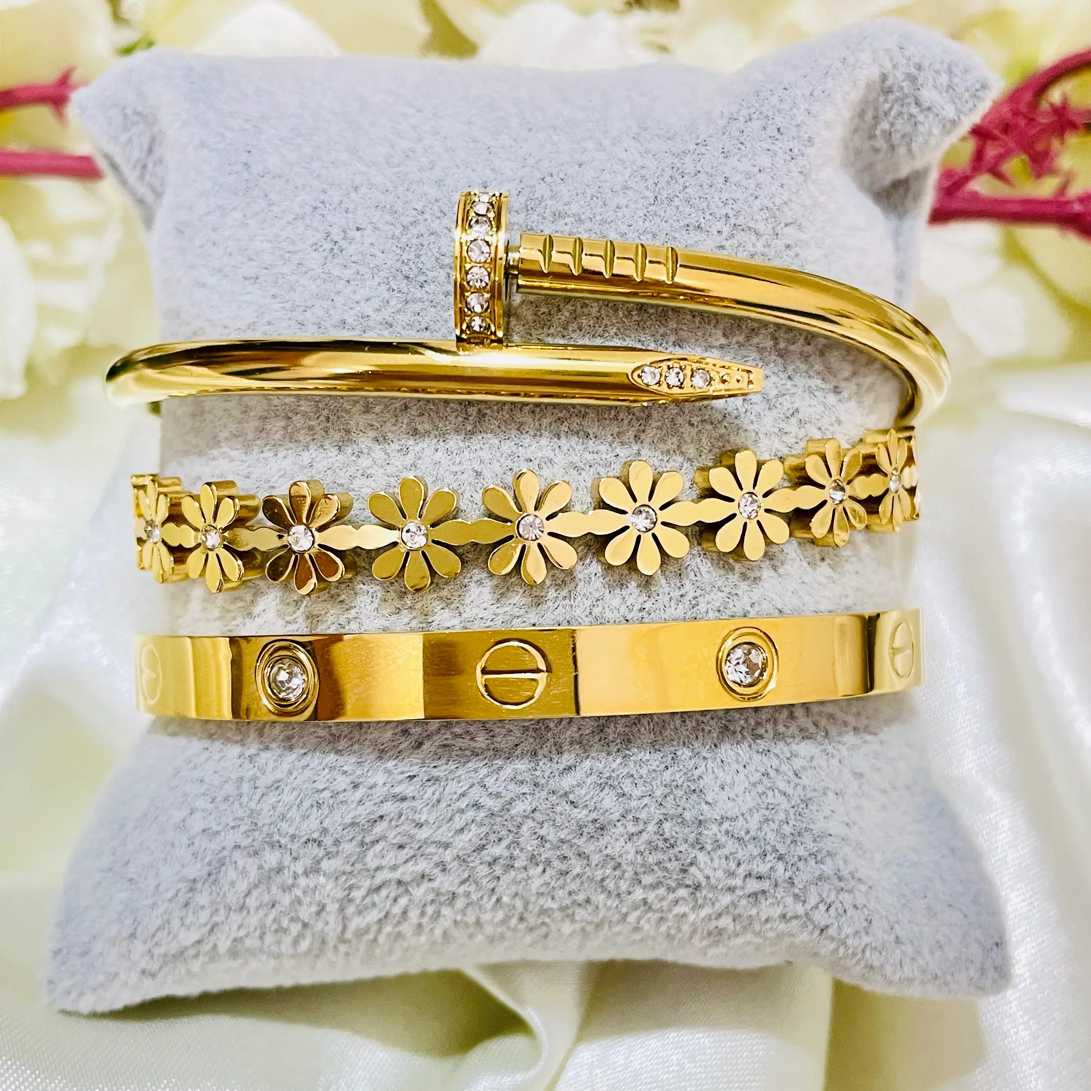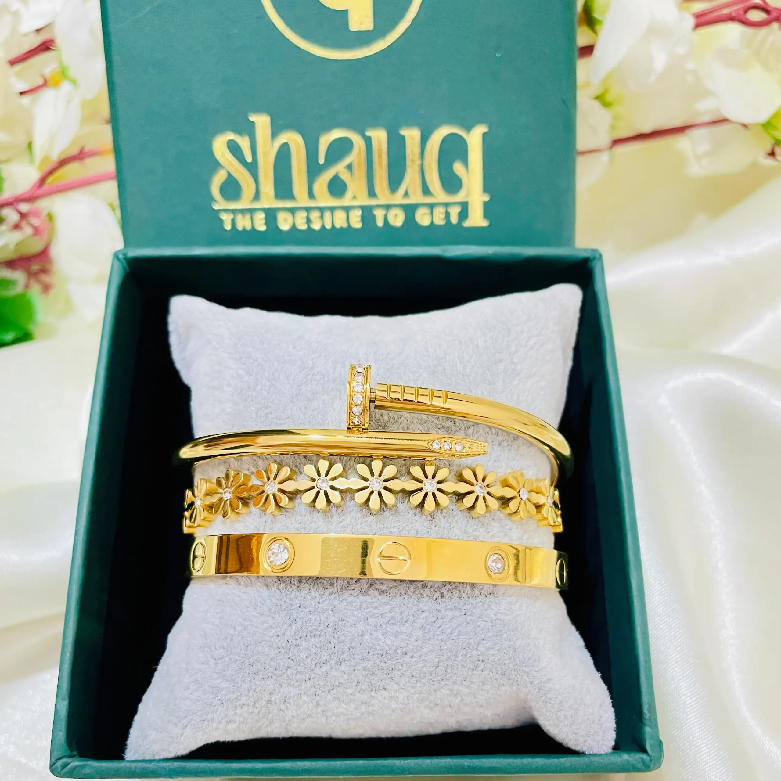 Combo Bangle Bracelets | Stainless Steel | Anti Tarnish | 18K Gold Plated | Waterproof
