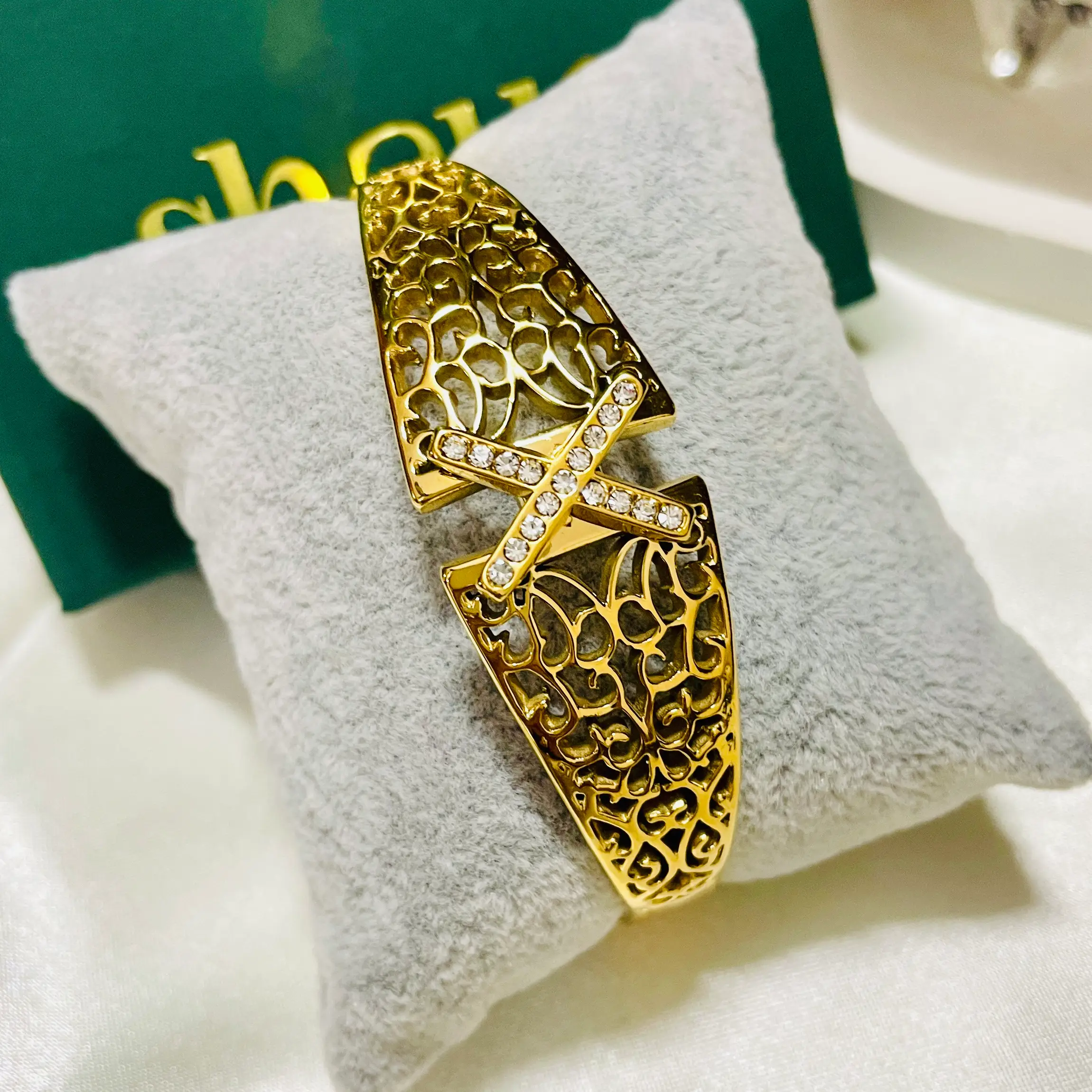 Crisp Cross Kada | Anti Tarnish | Water Resistance | Stainless Steel | 18K Gold Plated | Openable