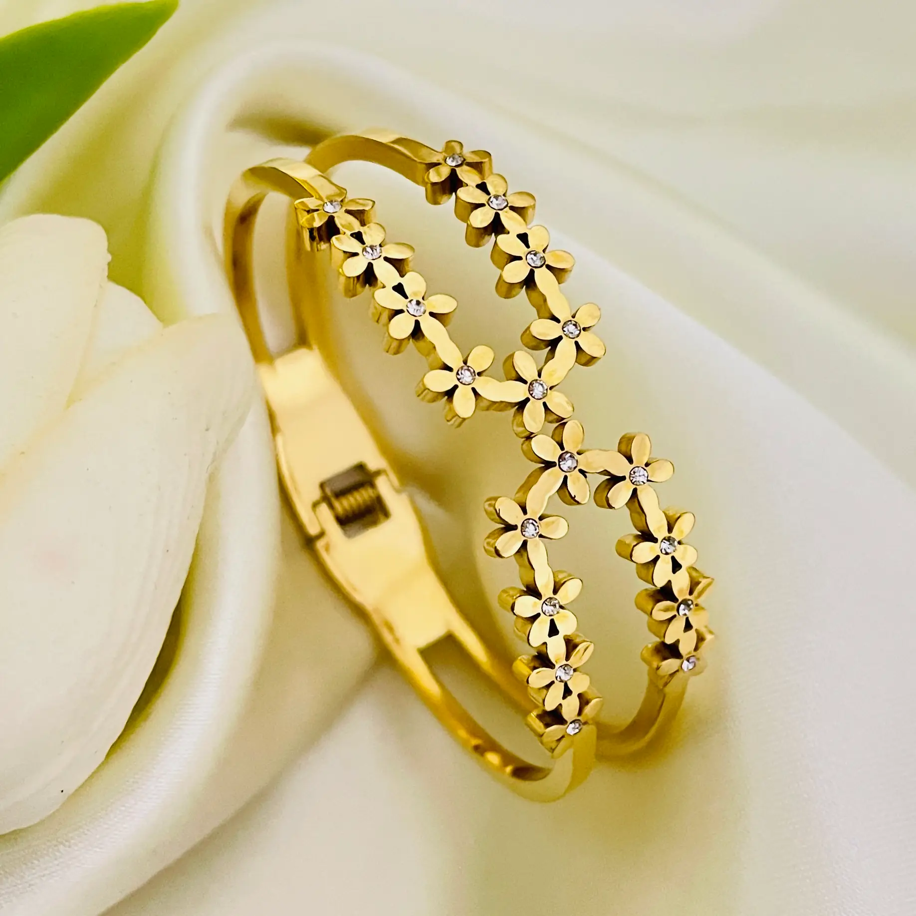 Daisy Charm Bangle Bracelet | Anti Tarnish | Water Resistant | Stainless Steel | Openable