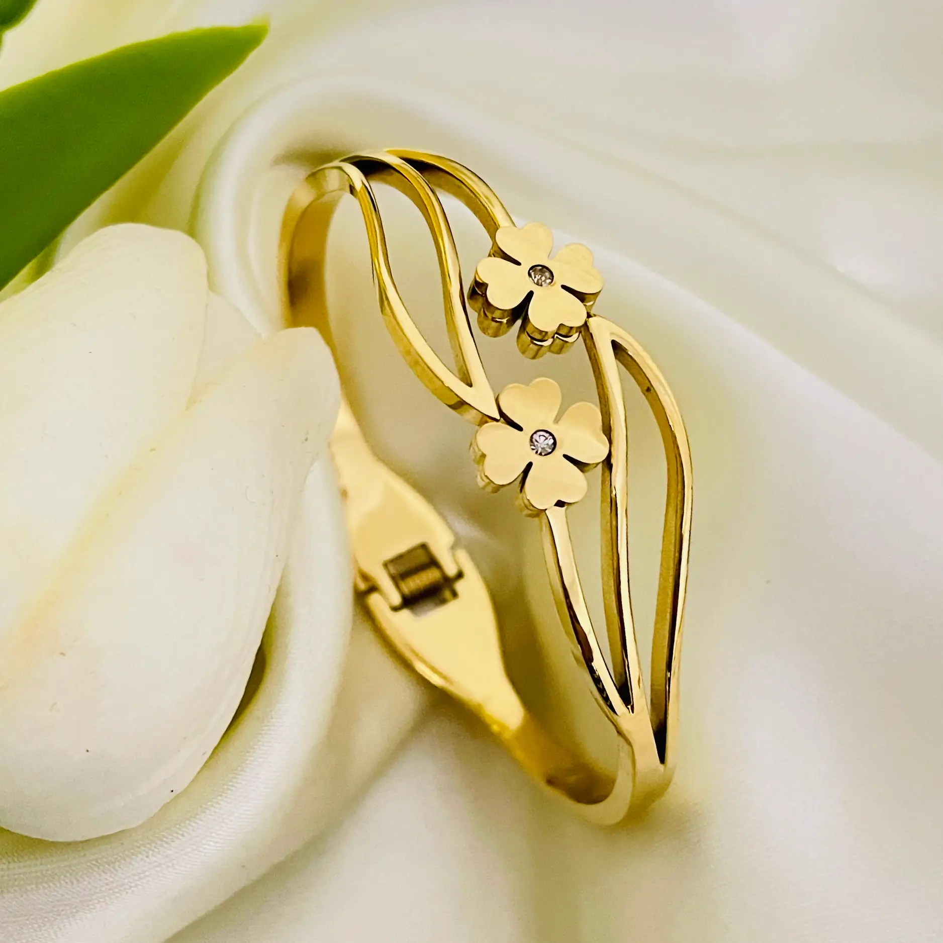 Daisy Curve Bangle Bracelet | Anti Tarnish | Water Resistant | Stainless Steel | Openable