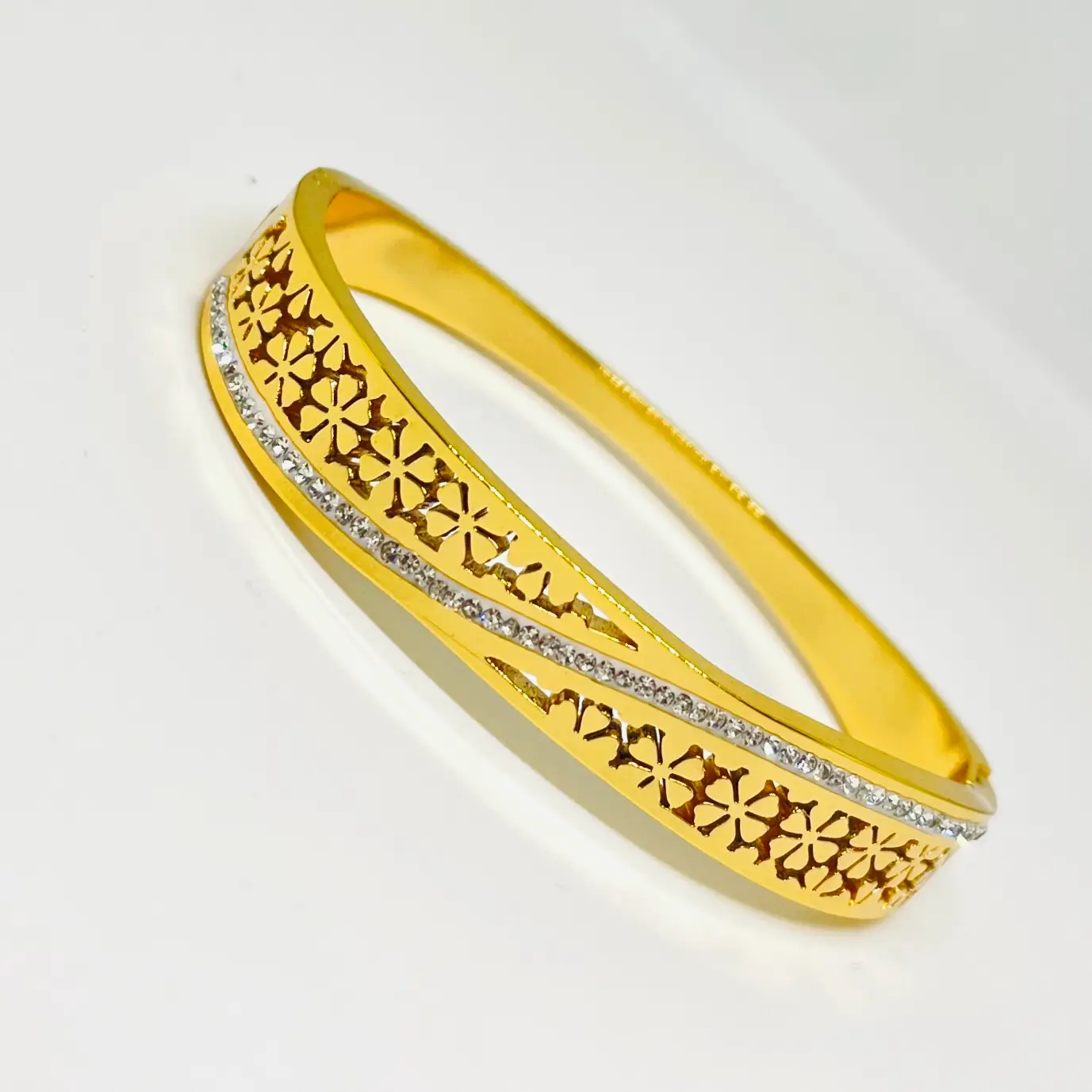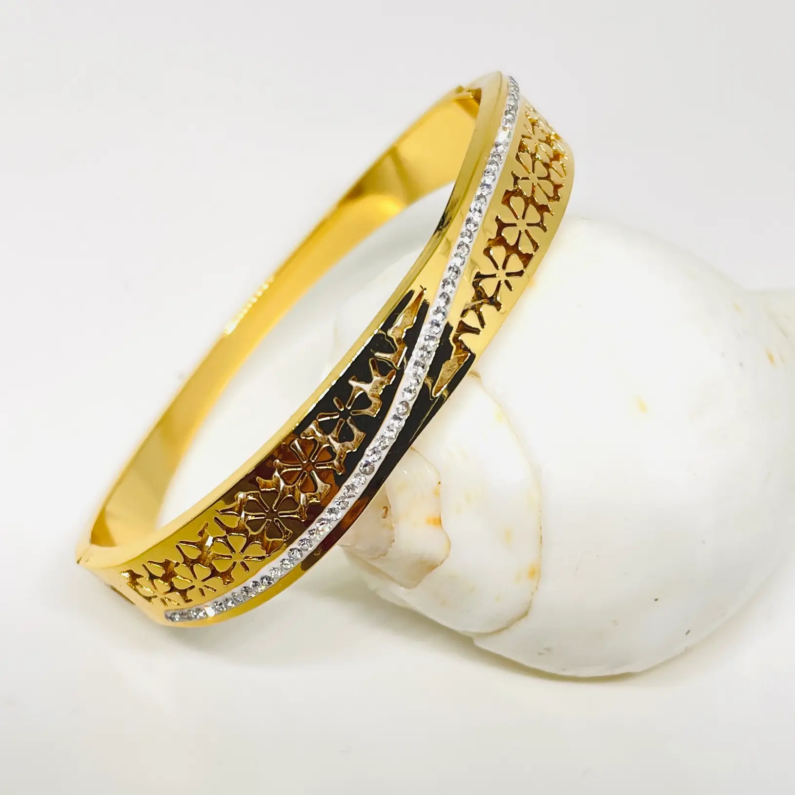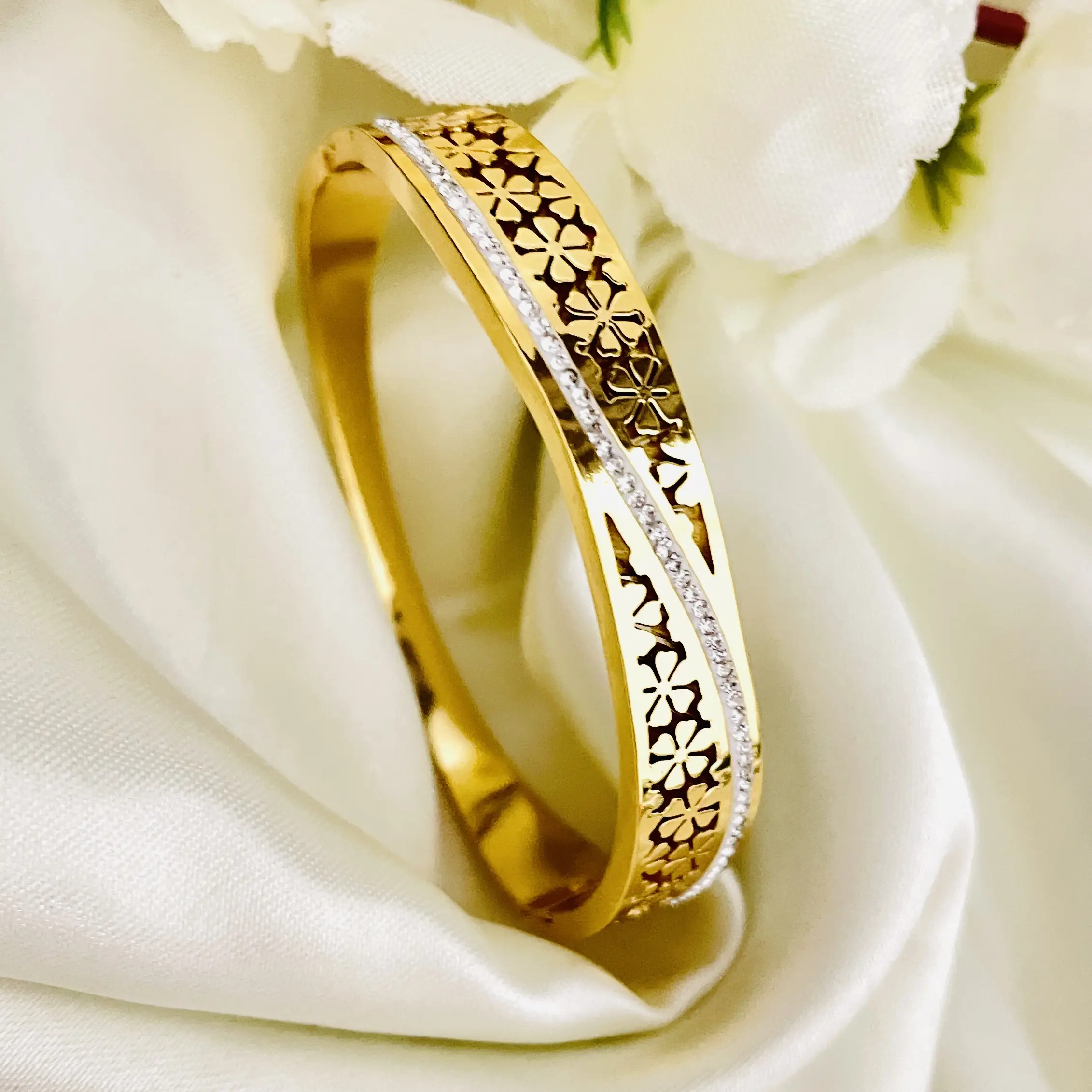 Daisy Flora Bangle Bracelet | Stainless Steel | Anti Tarnish | 18K Gold Plated | Waterproof | Openable