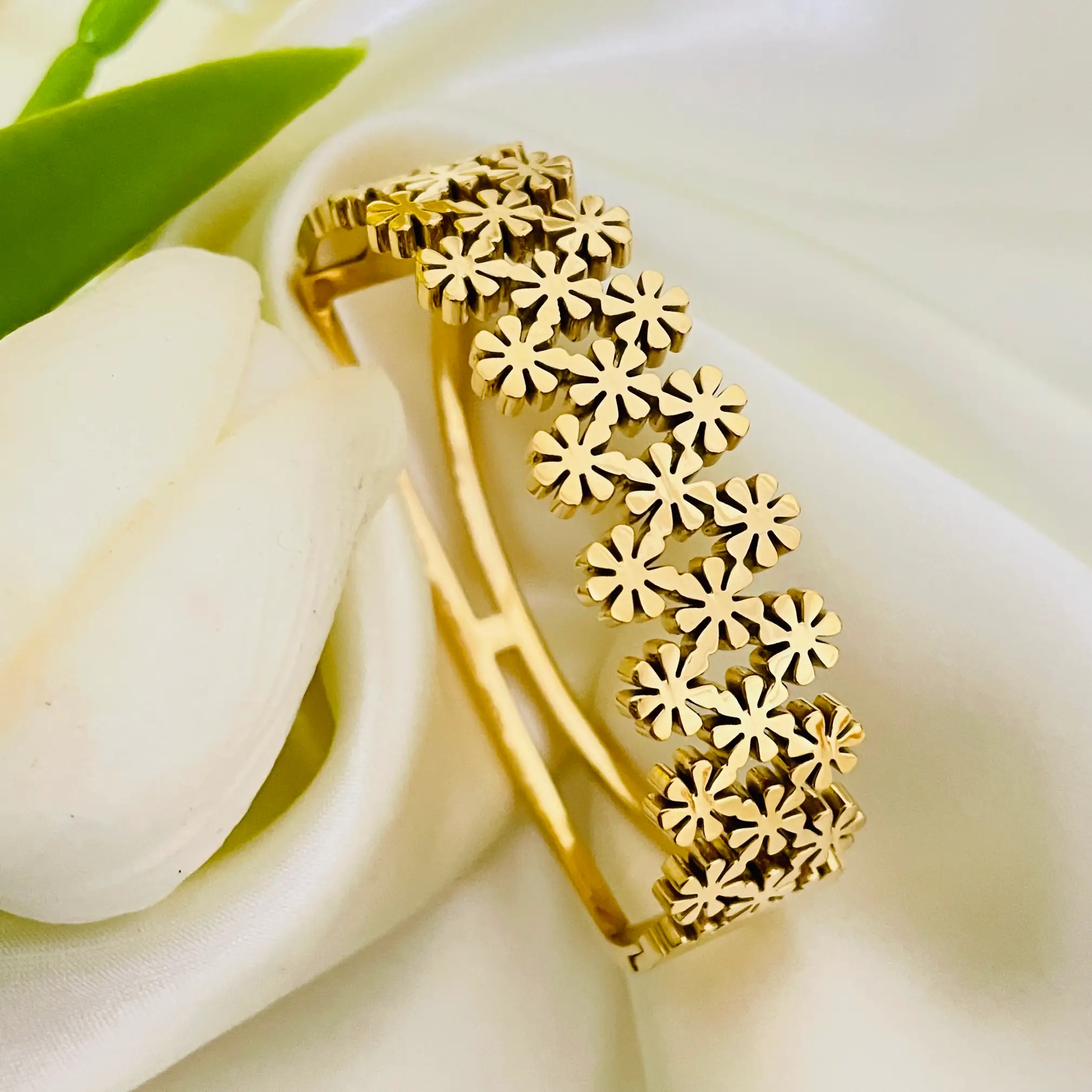 Daisy Glow Bangle Bracelet | Anti Tarnish | Water Resistant | Stainless Steel | Openable