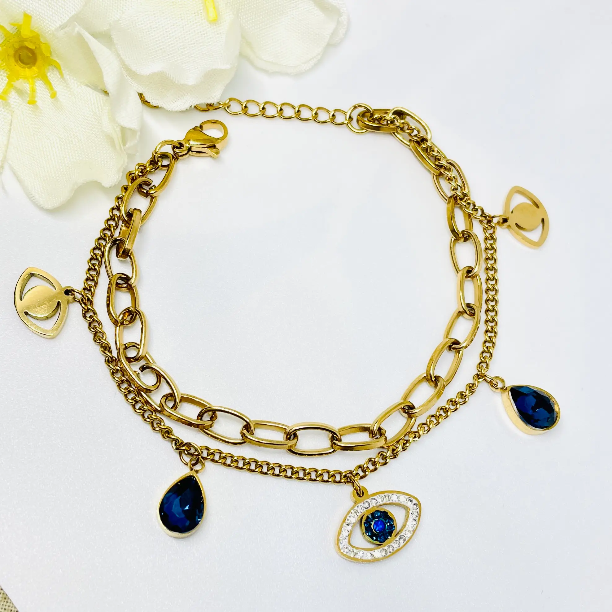 Evil Eye Double layer Chain Bracelet | Stainless Steel | Anti Tarnish | 18K Gold Plated | Waterproof