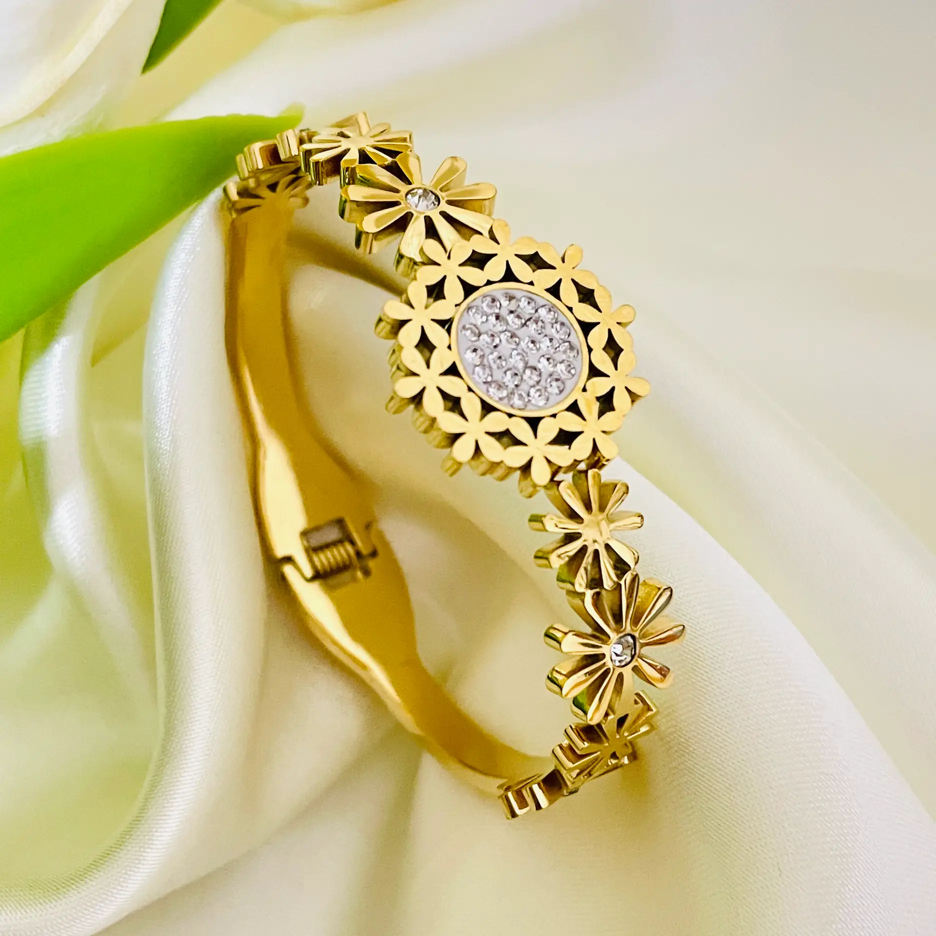 Flora Crown Bangle Bracelet | Anti Tarnish | Water Resistant | Stainless Steel | Openable
