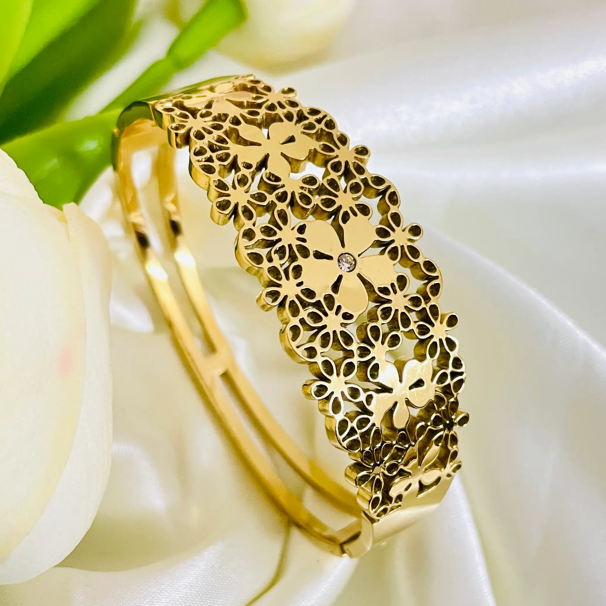 Flora Elegance Bangle Bracelet | Anti Tarnish | Waterproof | Stainless Steel | Daily Wear | Openable