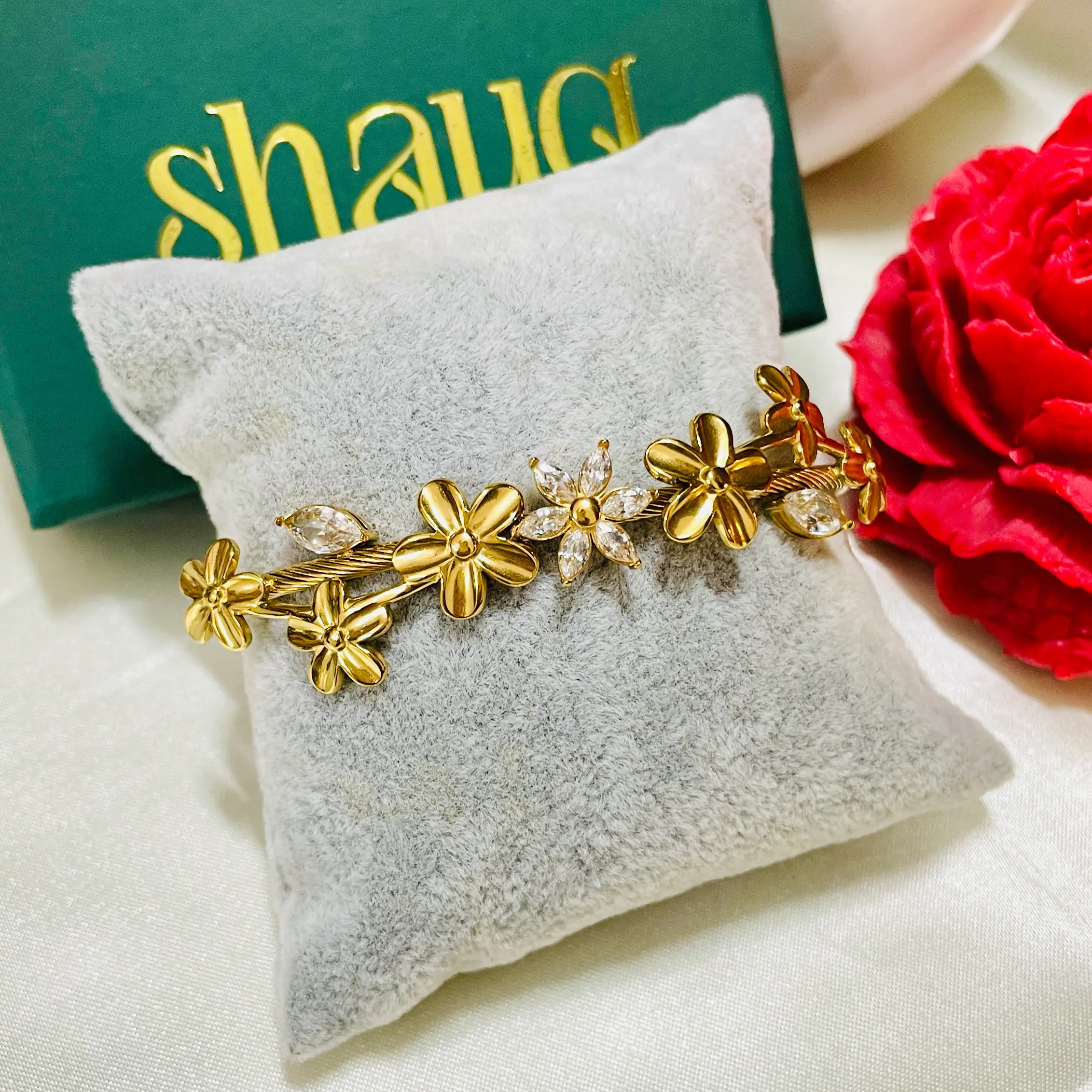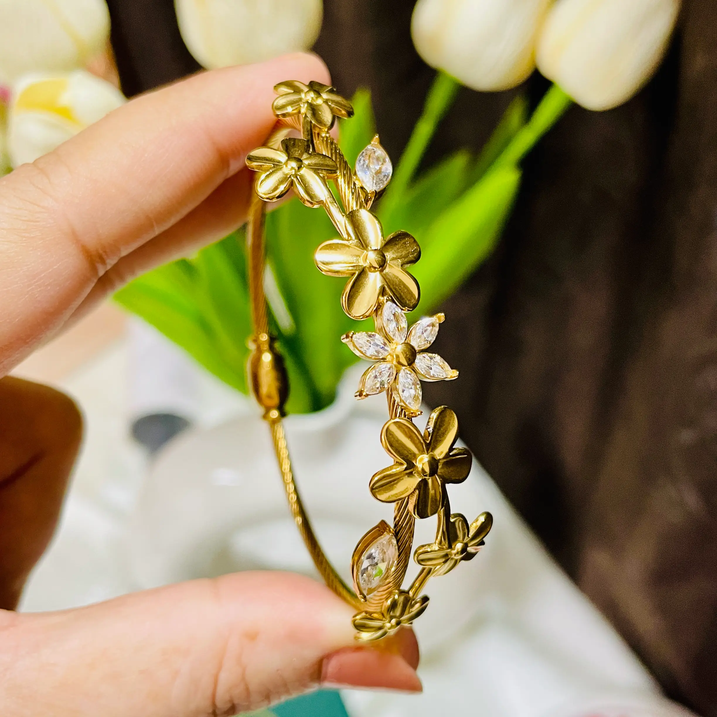 Flora Whisper Bangle Bracelet | Anti Tarnish | Waterproof | Hypoallergenic | Daily Wear | Openable