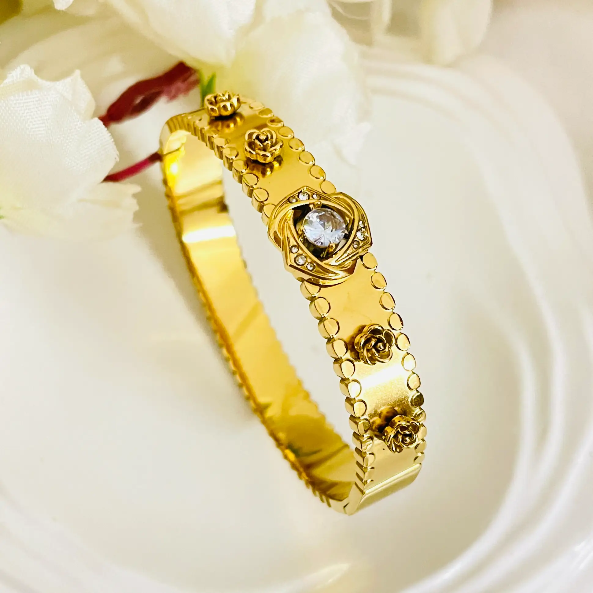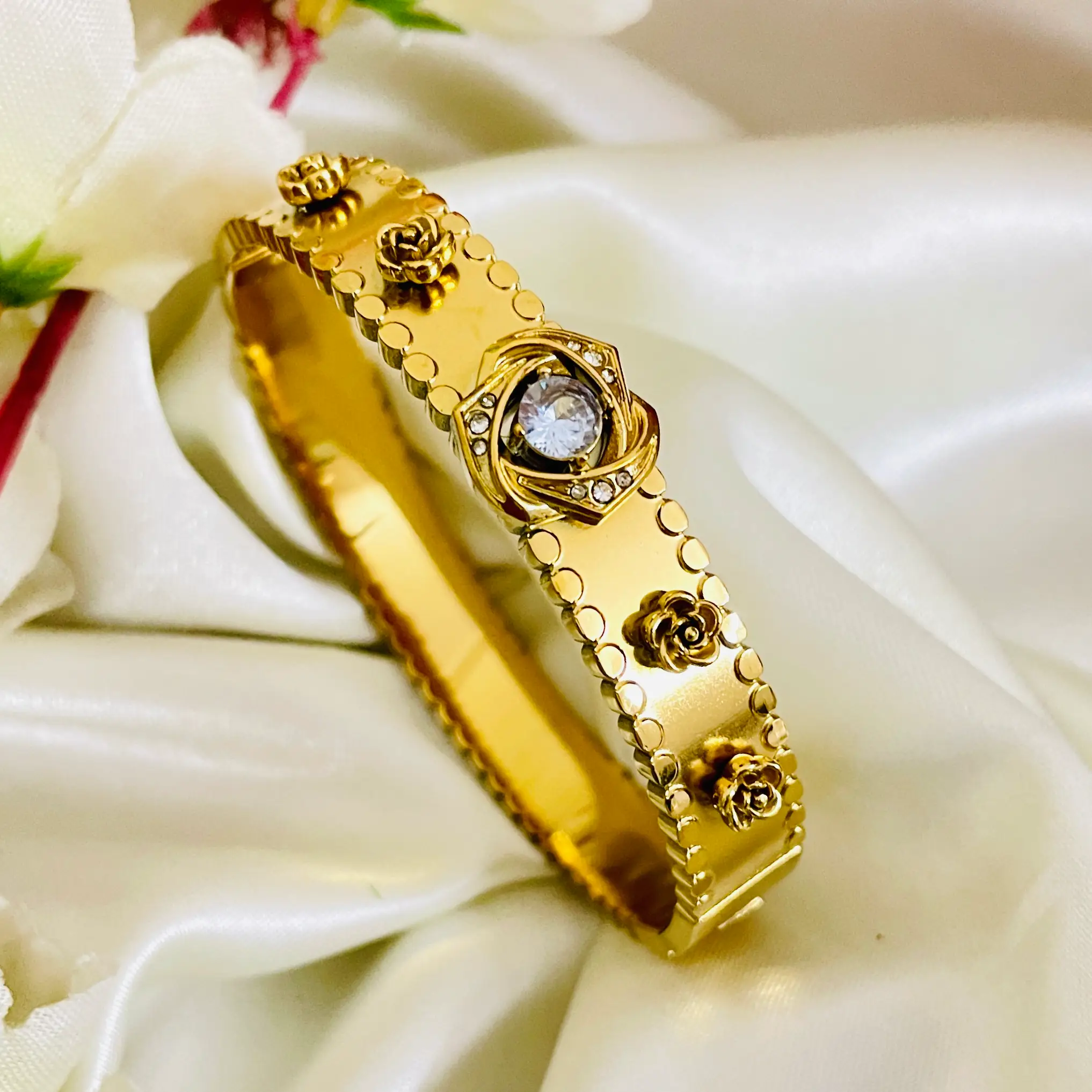 Flower Grace Bangle Bracelet | Anti Tarnish | Waterproof | daily Wear | Stainless Steel | Openable