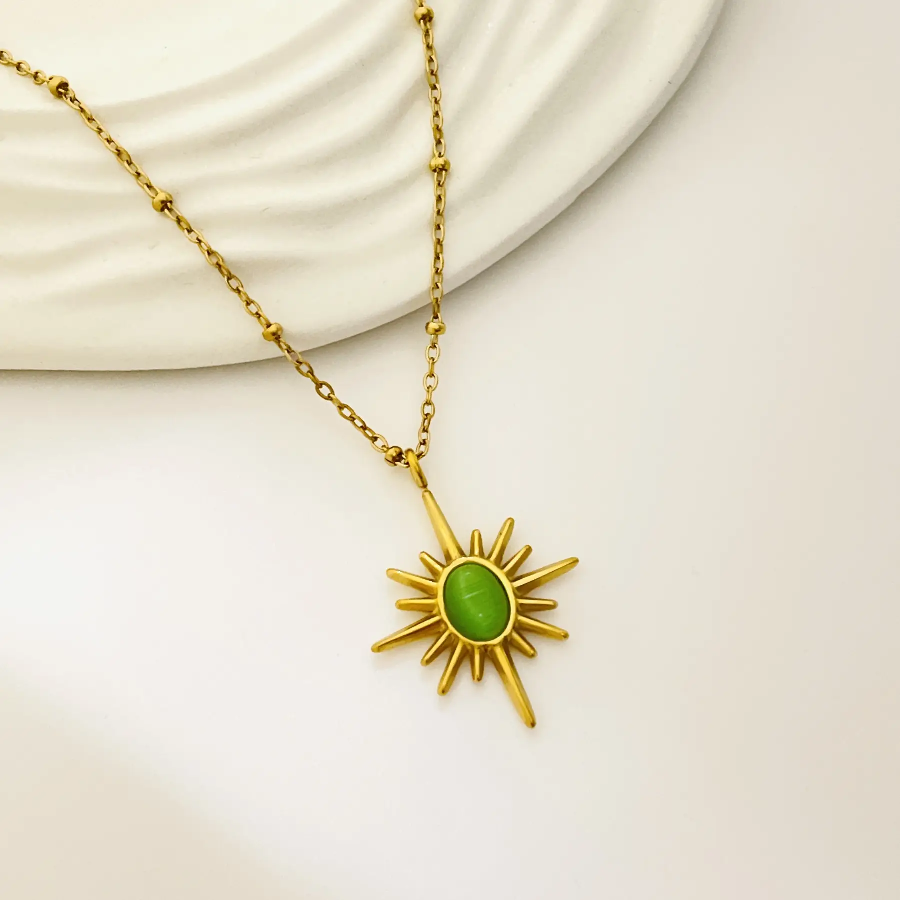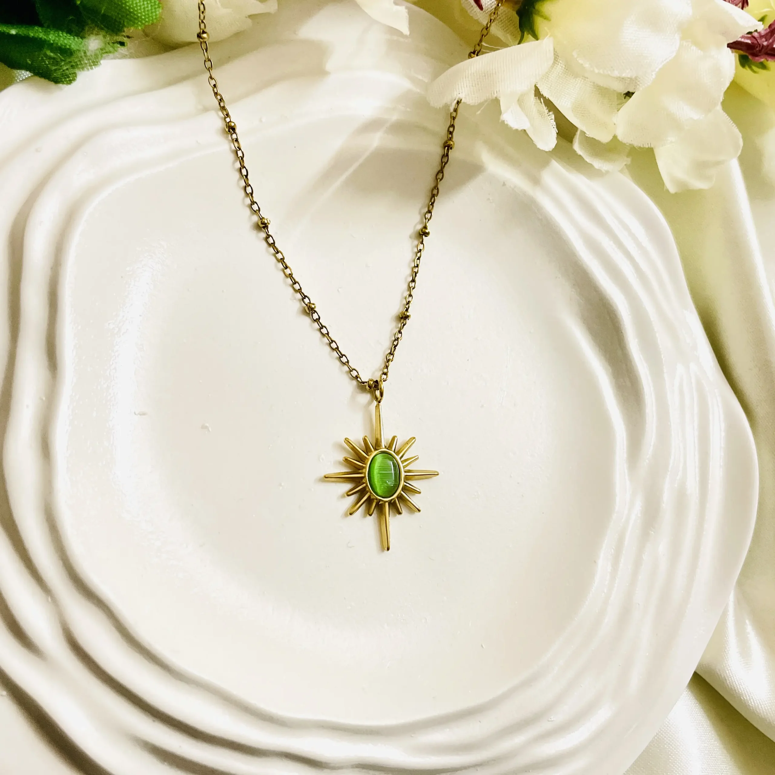 Green Glint Necklace | Stainless Steel | Anti Tarnish | 18K Gold Plated | Waterproof
