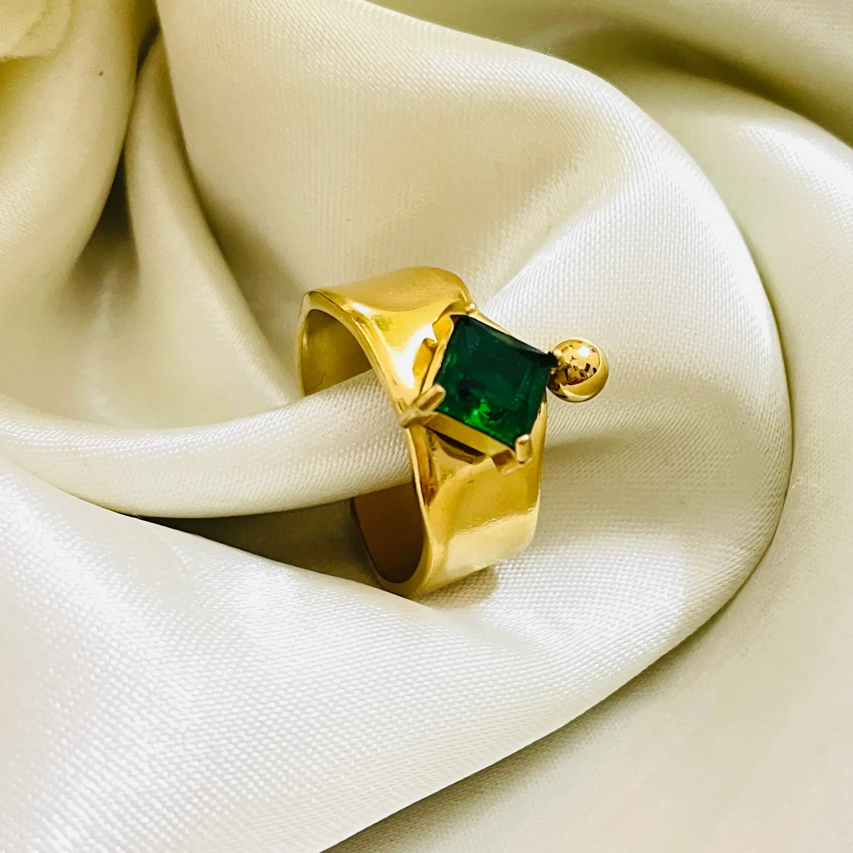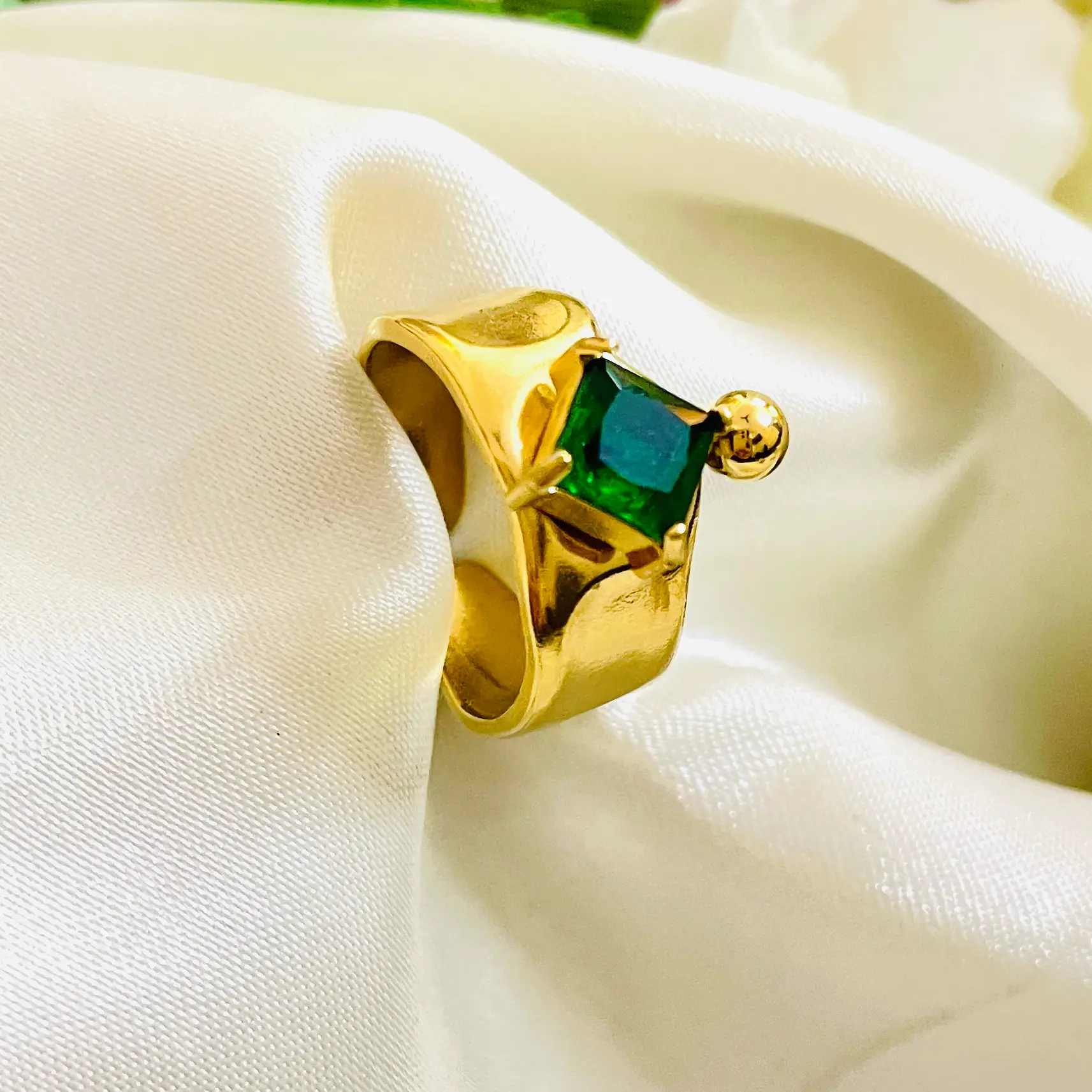 Green Grace Ring | Stainless Steel | Anti Tarnish | 18K Gold Plated | Waterproof | Adjustable