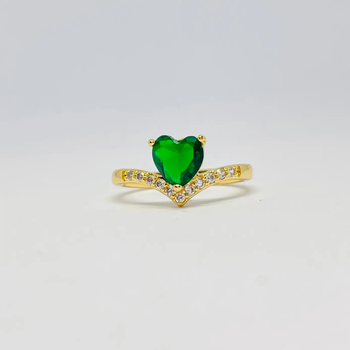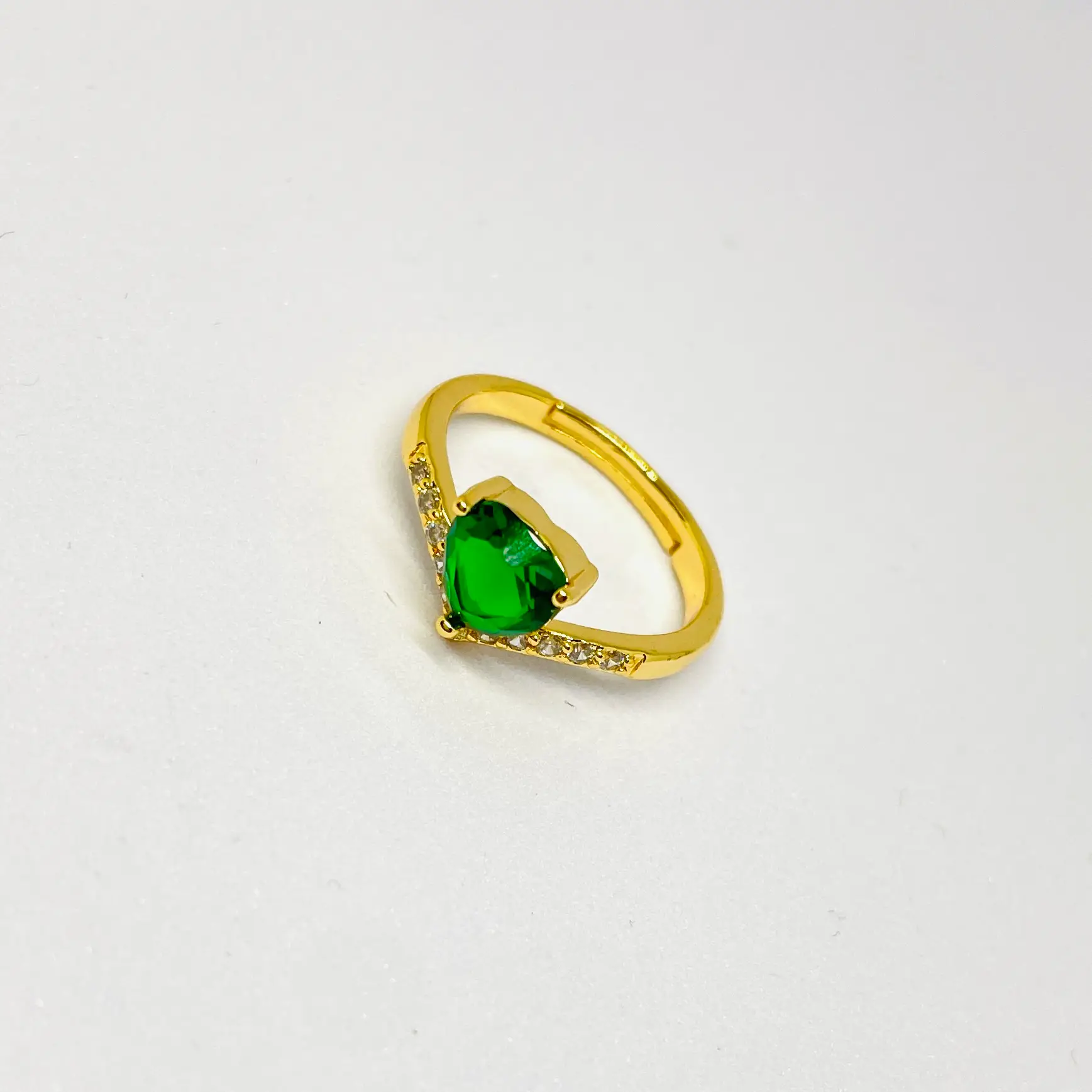 Green Heart Solitaire Ring | Stainless Steel | Anti Tarnish | 18K Gold Plated | Adjustable