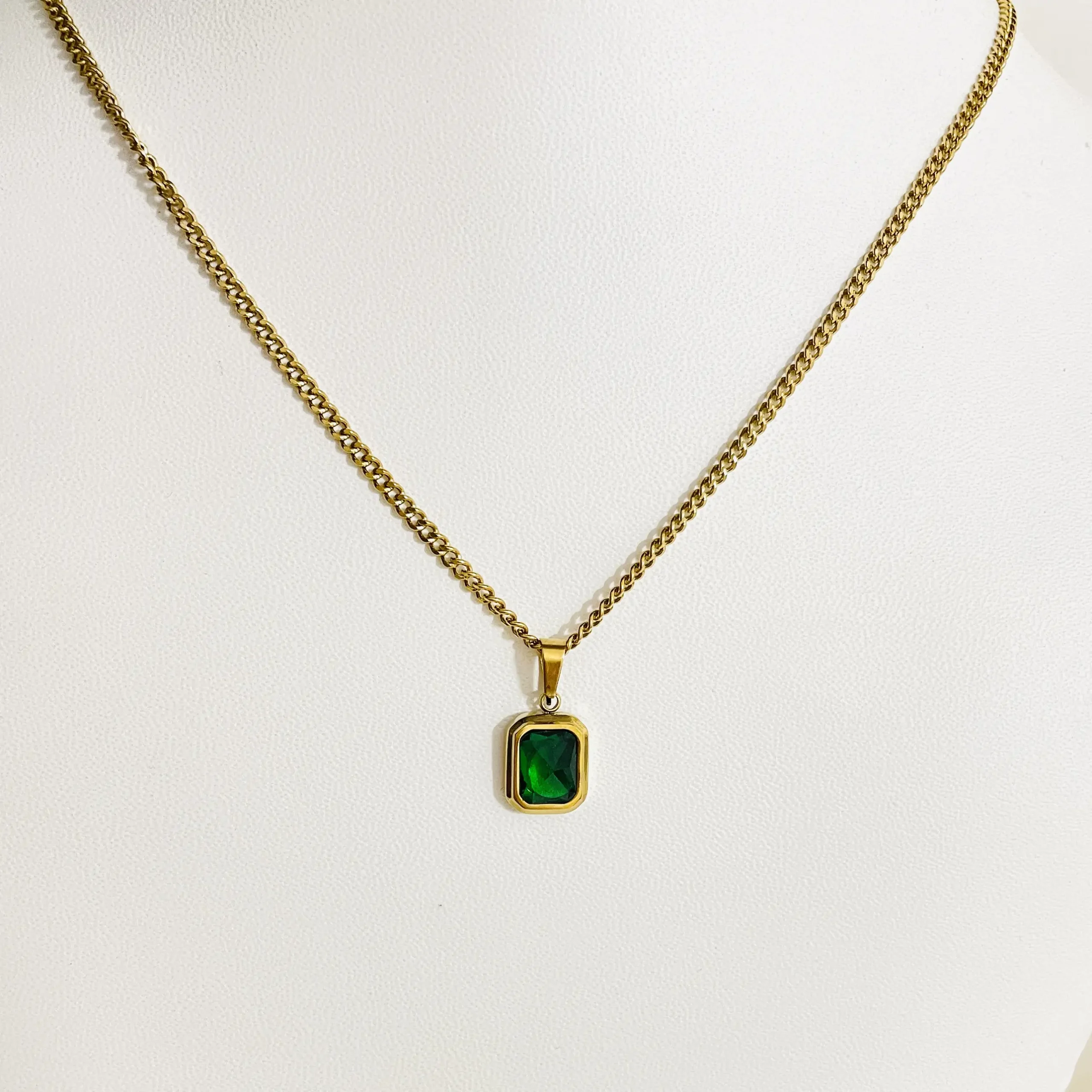 Green Stone Necklace | Stainless Steel | Anti Tarnish | 18K Gold Plated | Waterproof