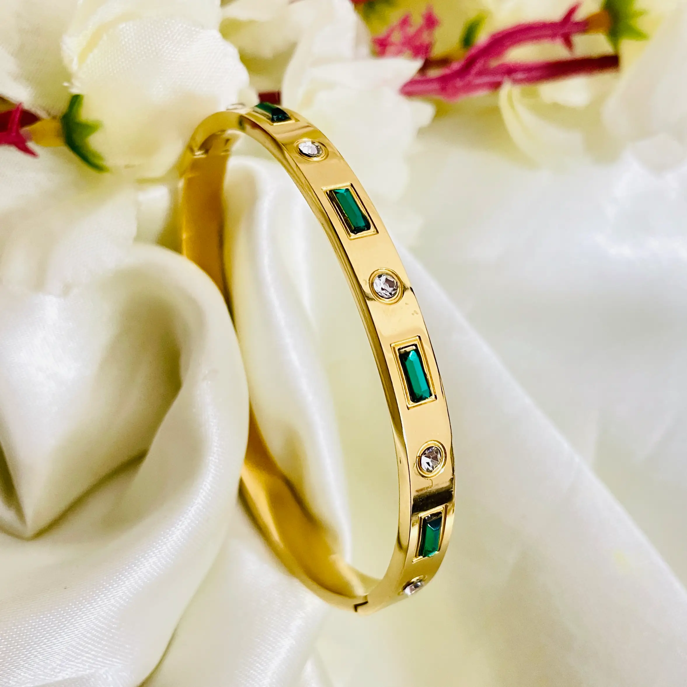 GreenRec with Diamonds Bracelets | Stainless Steel | Anti Tarnish | 18K Gold Plated | Waterproof | Openable