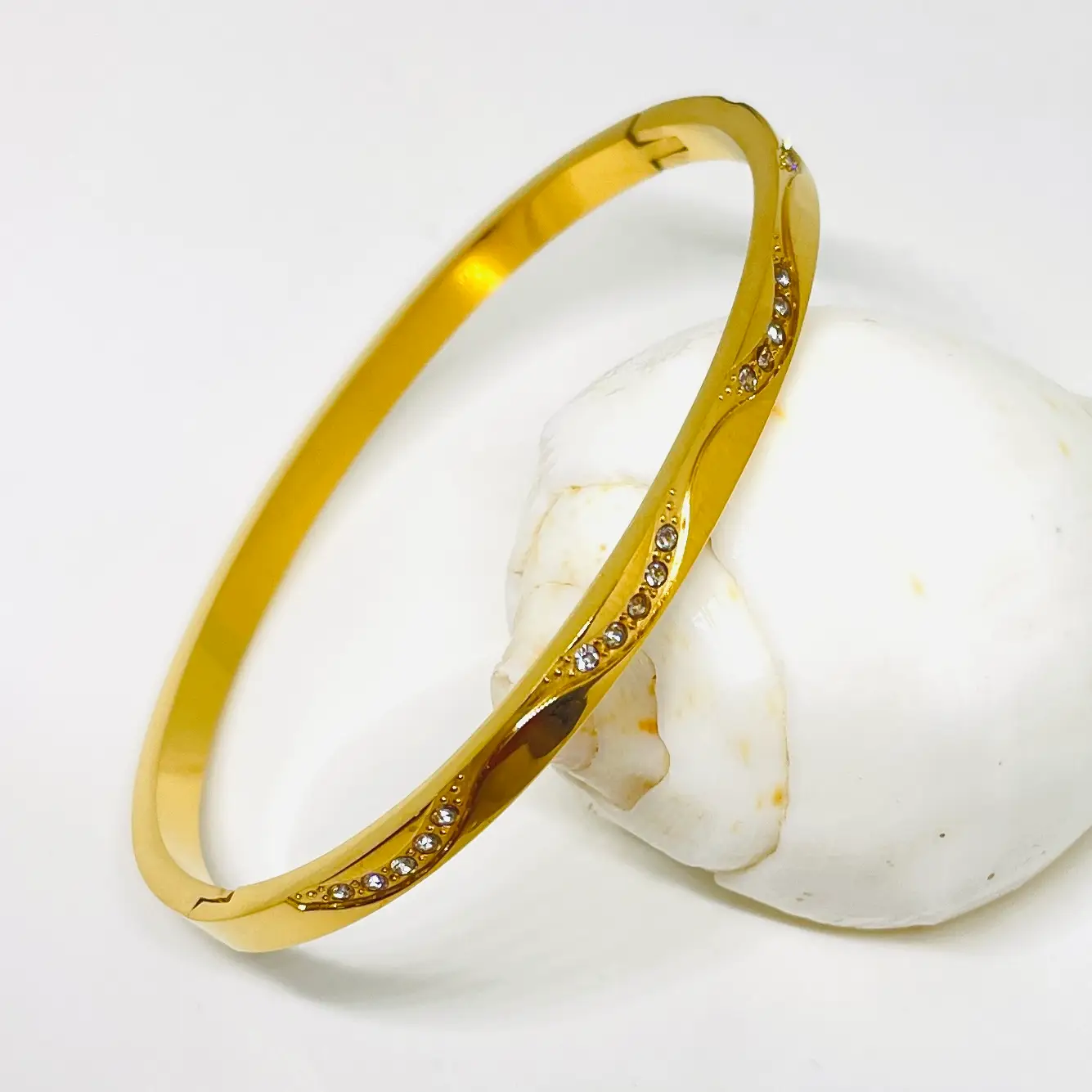 Half Moon Bangle Bracelet| Stainless Steel | Anti Tarnish | 18K Gold Plated | Waterproof | Openable