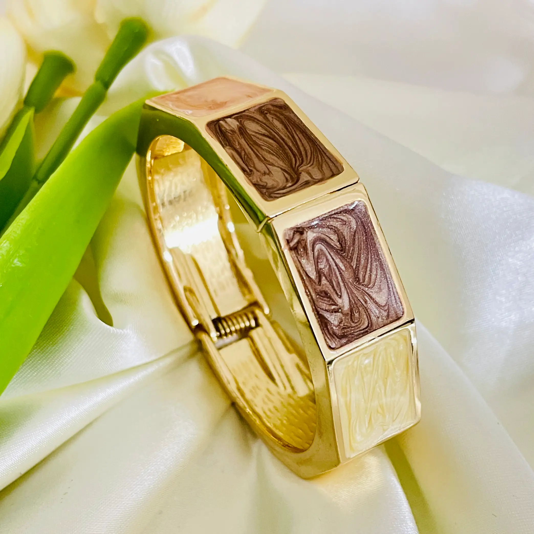 Heritage Gold Enamel Bangle | Anti Tarnish | Waterproof | Stainless Steel | Daily Wear | Openable