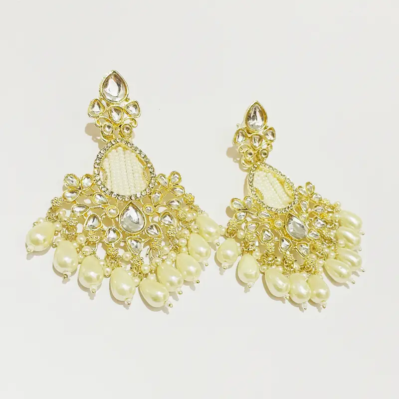 Elegant handcrafted Kundan earrings featuring intricate detailing and a traditional gold-tone finish. Perfect for weddings, festive occasions, or making a graceful statement.