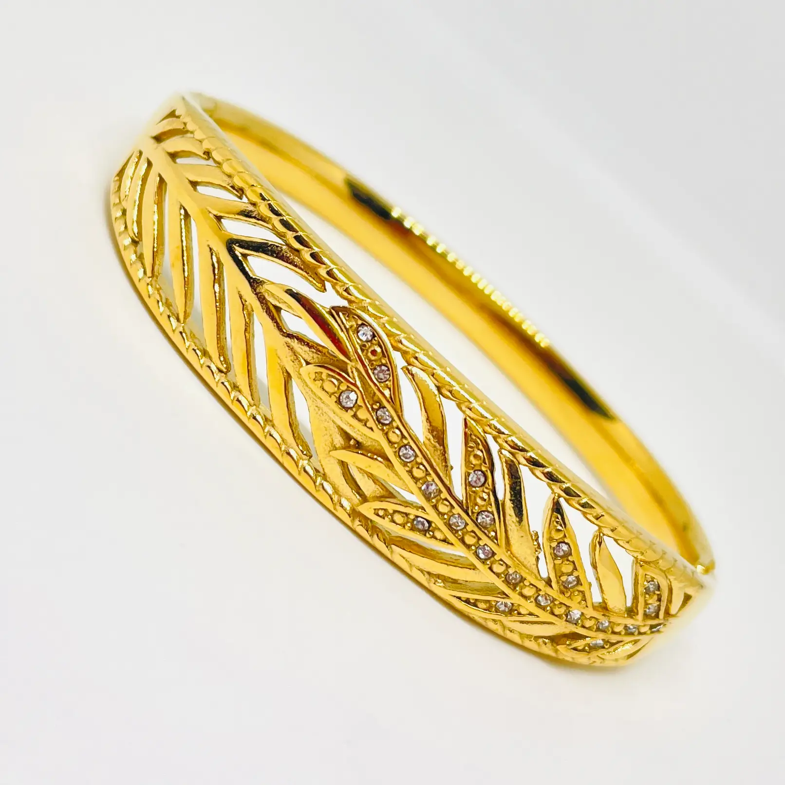 Leaf Studded Bangle Bracelet | 18K Gold Plated | Stainless Steel | Anti Tarnish | Waterproof | Openable