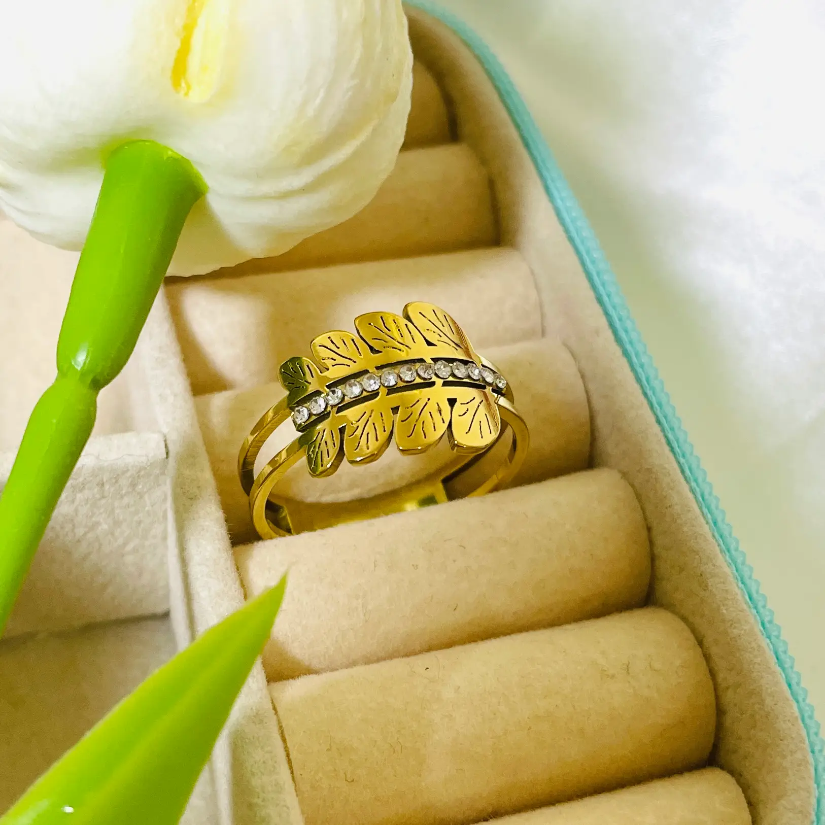 Leafline Studded Ring| Anti Tarnish | Waterproof | 18K Gold Plated | Daily Wear