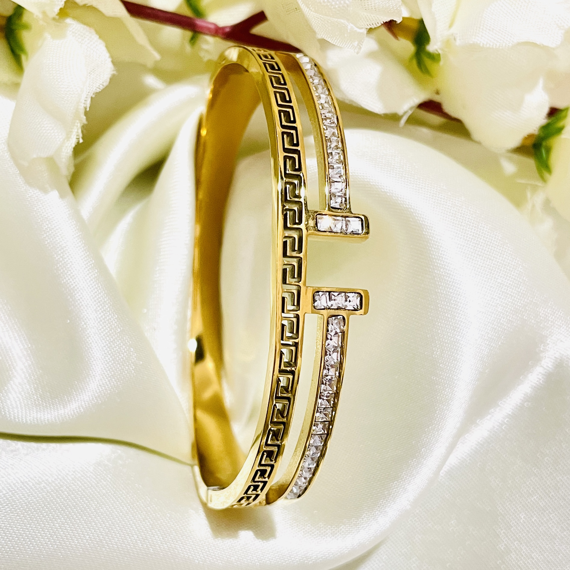 Maize Royale Studded Bangle Bracelet | Anti Tarnish | 18K Gold Plated | Openable