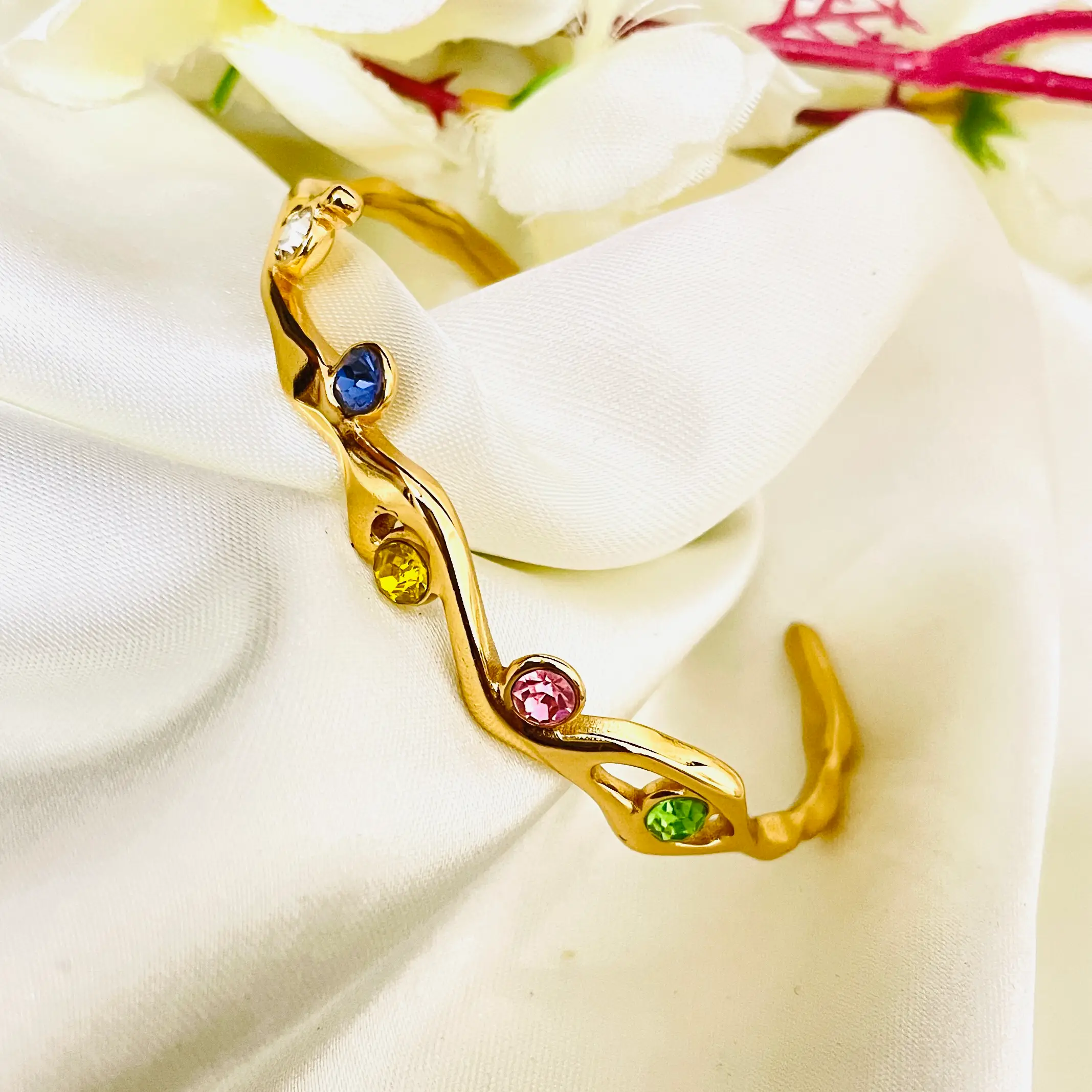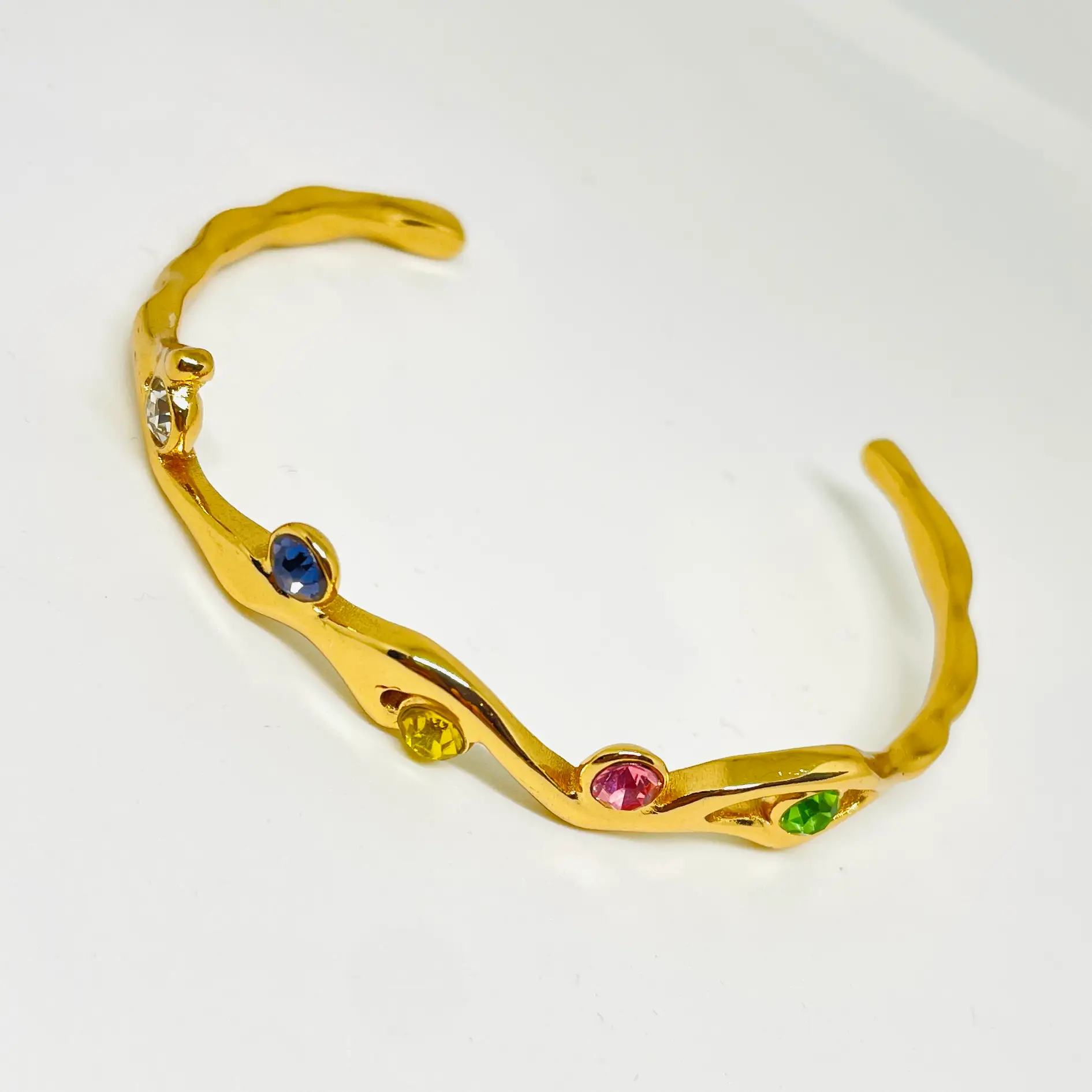 Multi Diamonds Handcuff | Stainless Steel | Anti Tarnish | 18K Gold Plated | Waterproof