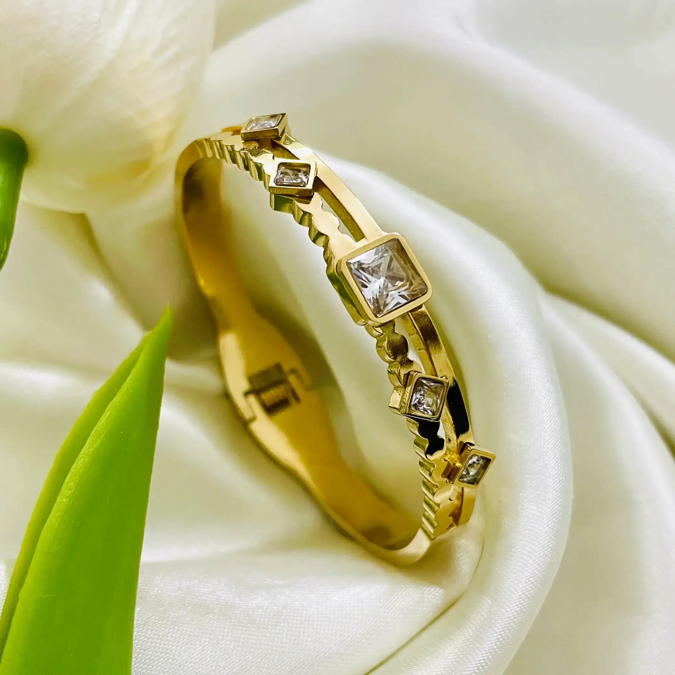 Studded Clover Bracelet | Anti Tarnish | Stainless Steel | 18K Gold Plated | Waterproof | Daily Wear | Openable