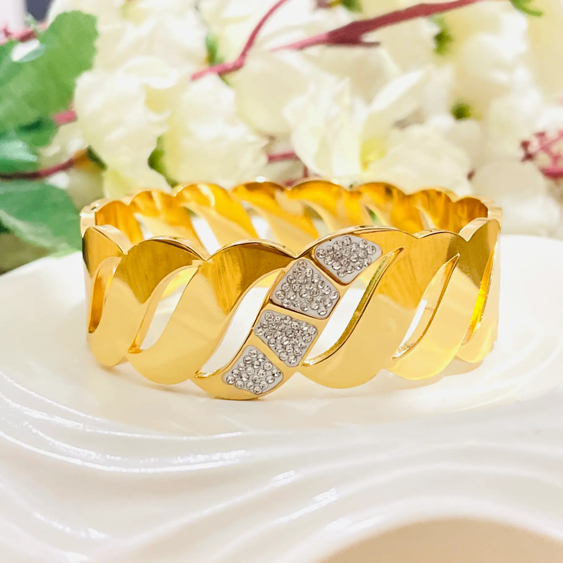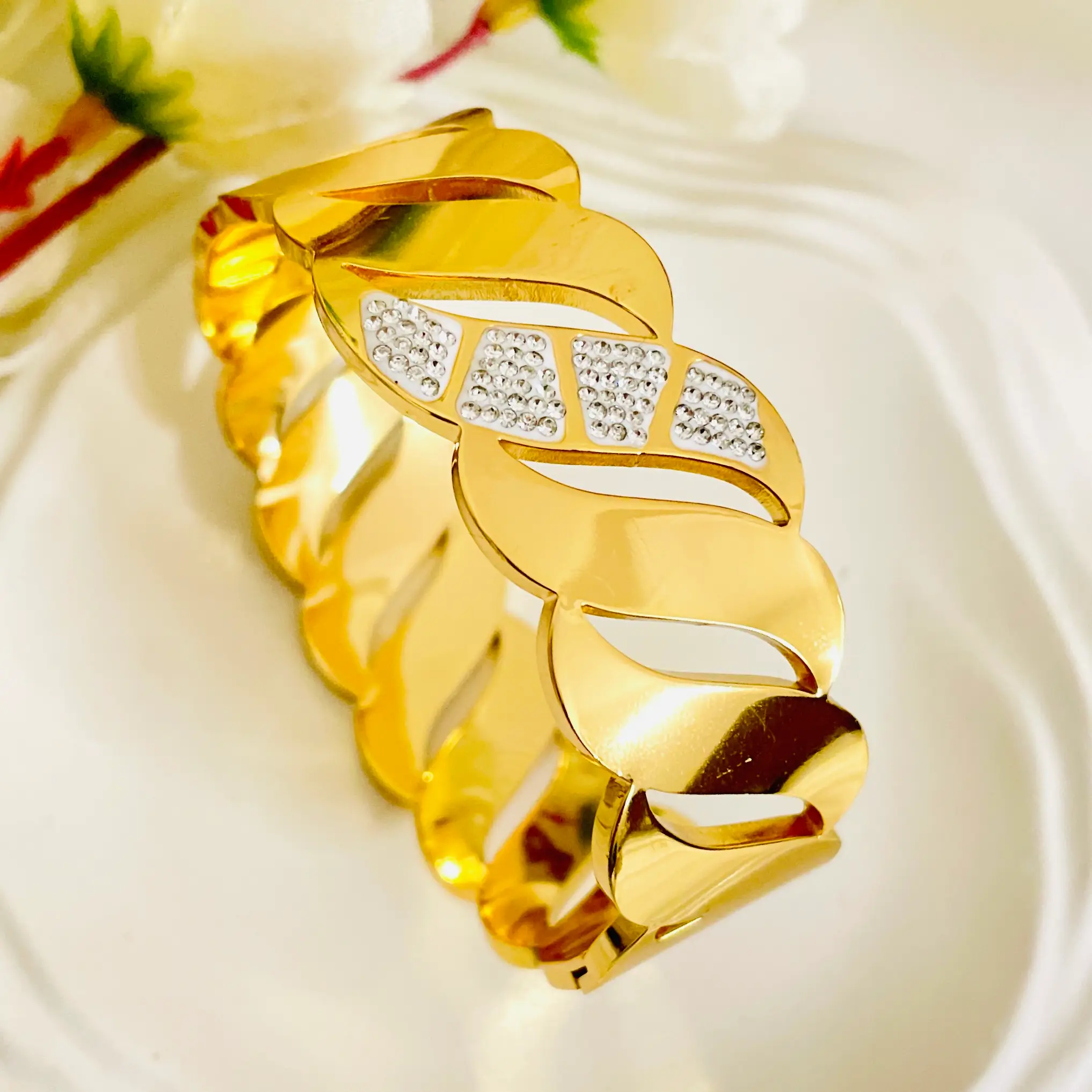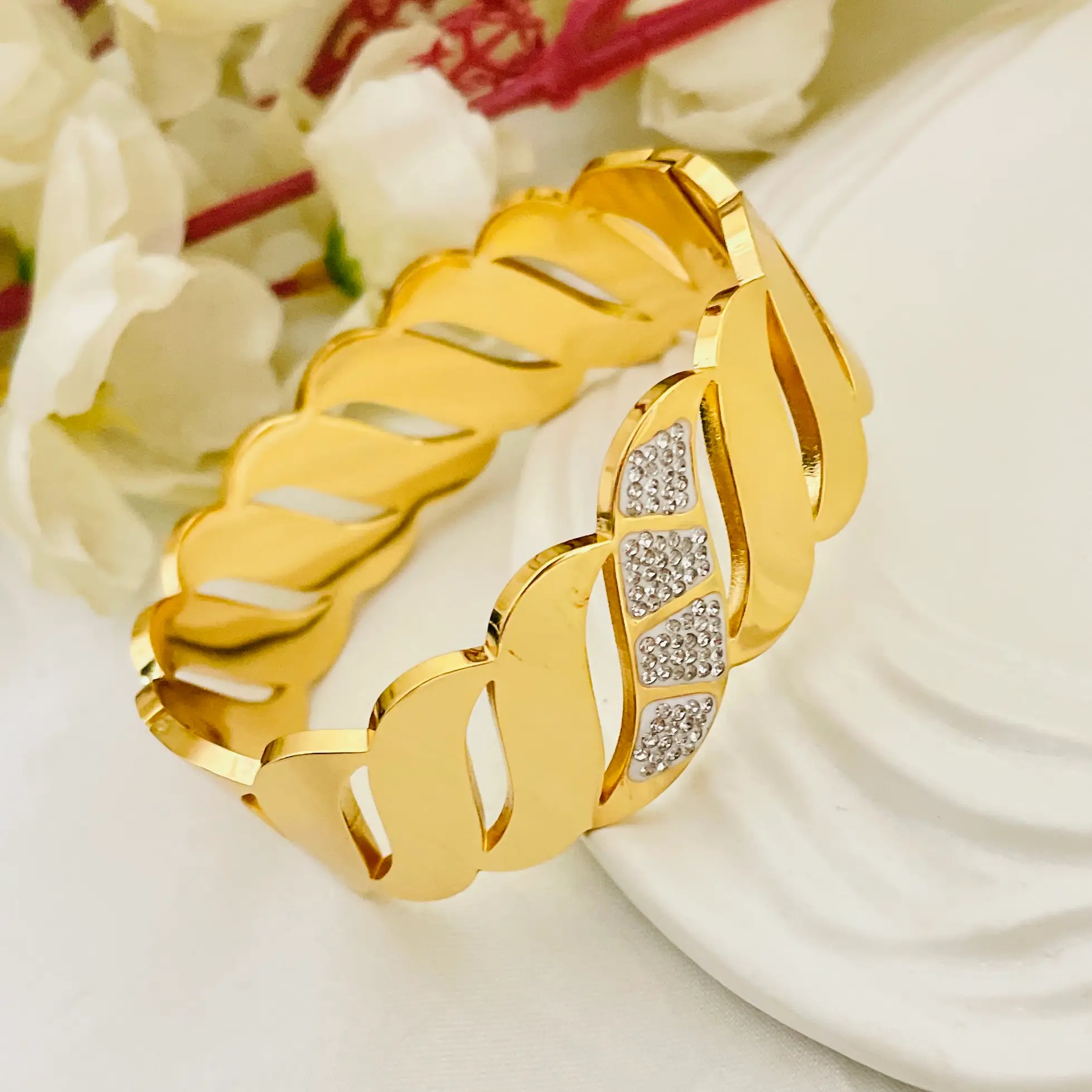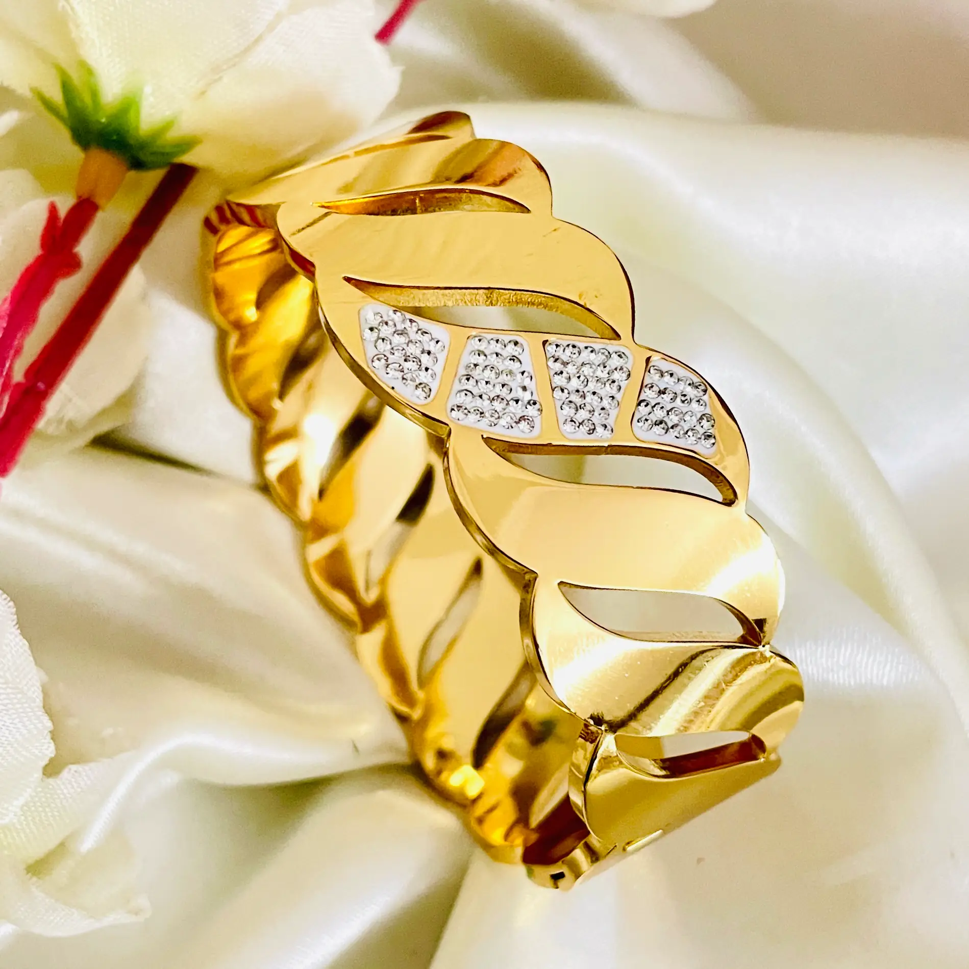 Petal Curve Bangle Bracelet | Anti Tarnis | Waterproof | 18K Gold Plated | Stainless Steel | Openable