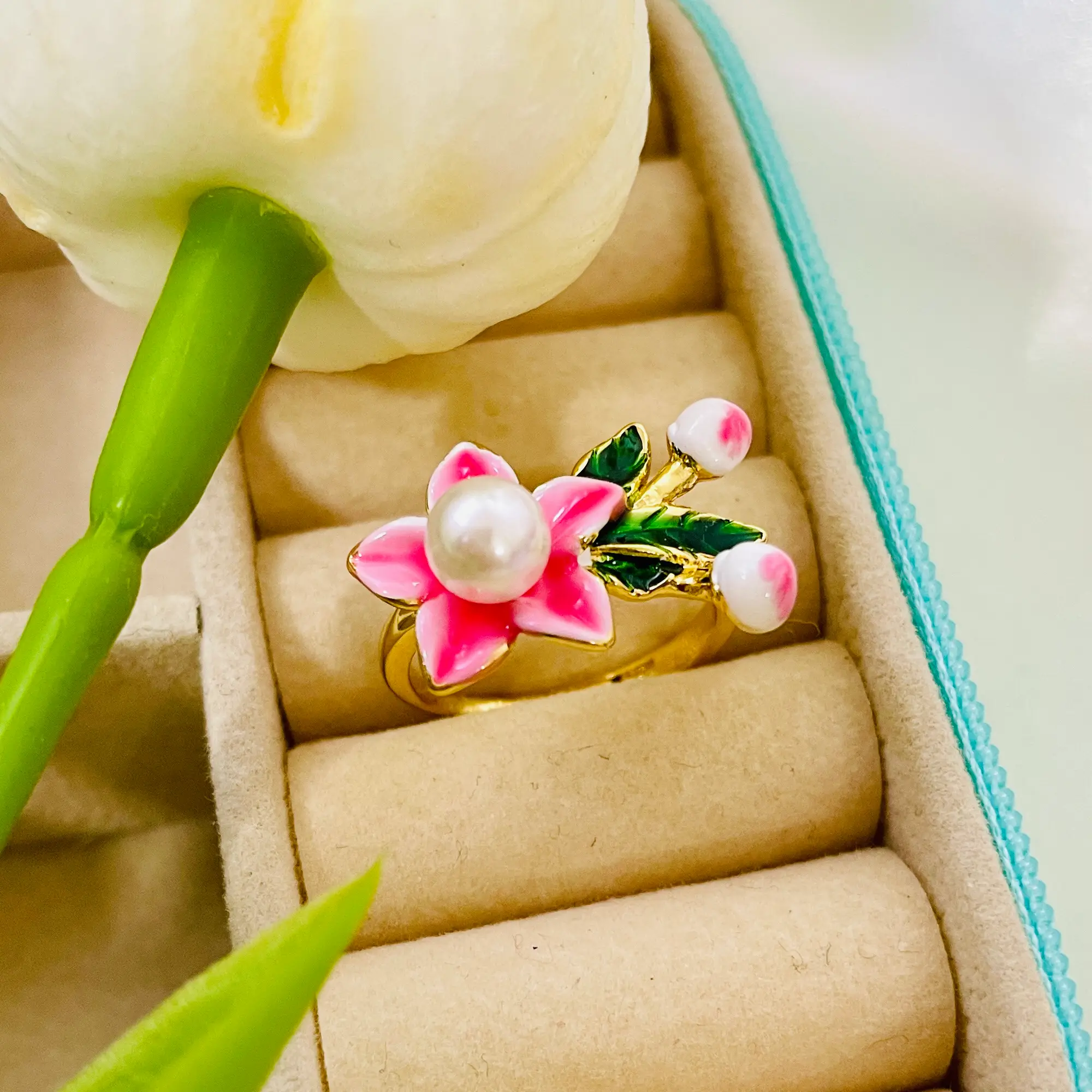 Pink Flora Ring | Anti Tarnish | Waterproof | 18K Gold Plated | Adjustable