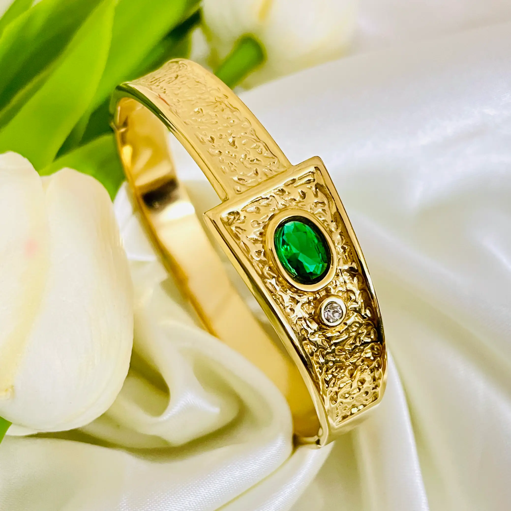 Rajwadi Emerald Bangle Bracelet | Anti Tarnish | Waterproof | Stainless Steel | Daily Wear | Openable