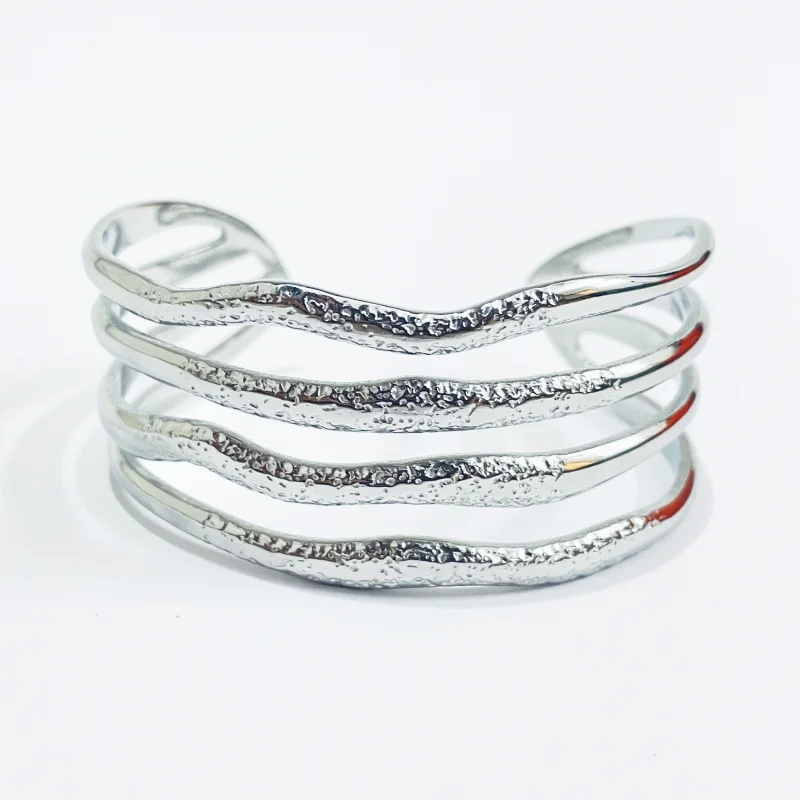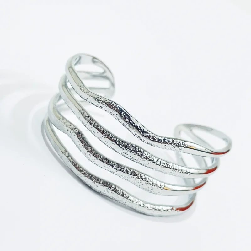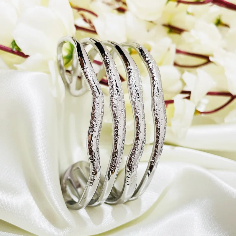 Rock Lines Silver Cuffs | Anti Tarnish | Waterproof– Timeless Elegance & Versatile Style