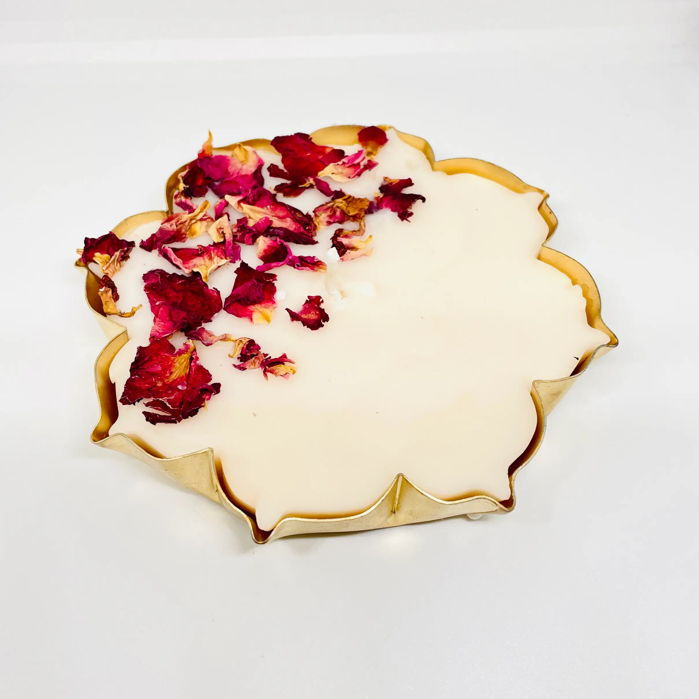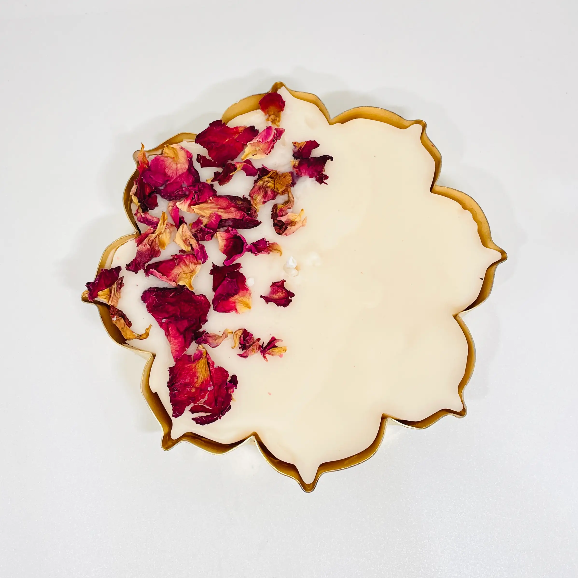 Bring timeless beauty home with our Rose Natural Dried Petal Urli Candle, crafted from eco-friendly soy wax and real dried petals in a handcrafted brass base. Infused with fresh rose fragrance, it radiates romance and grace—perfect as a festive centerpiece, for rituals, or as an elegant gift.