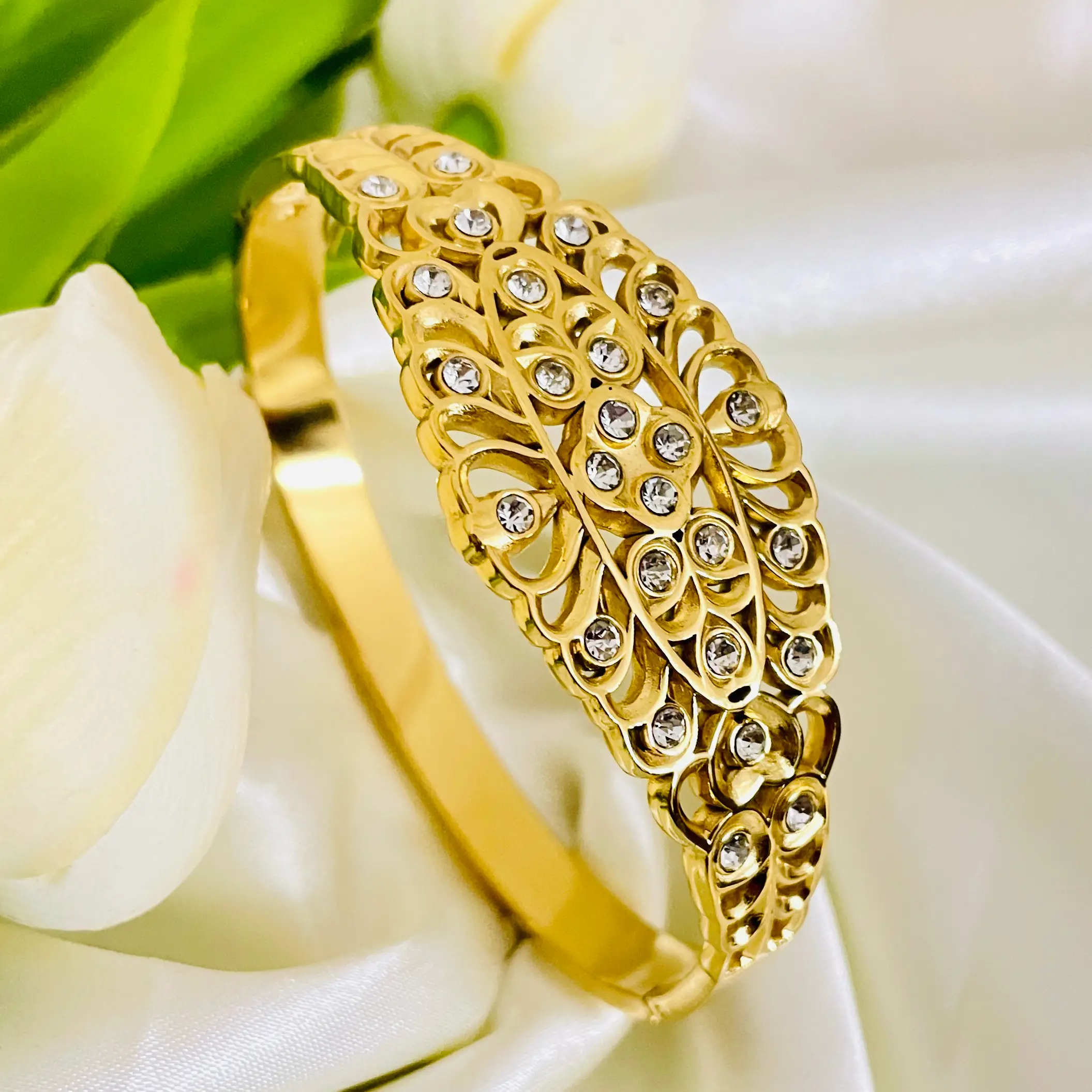 Royal Bloom Bangle Bracelet | Anti Tarnish | Waterproof | Stainless Steel | Daily Wear | Openable