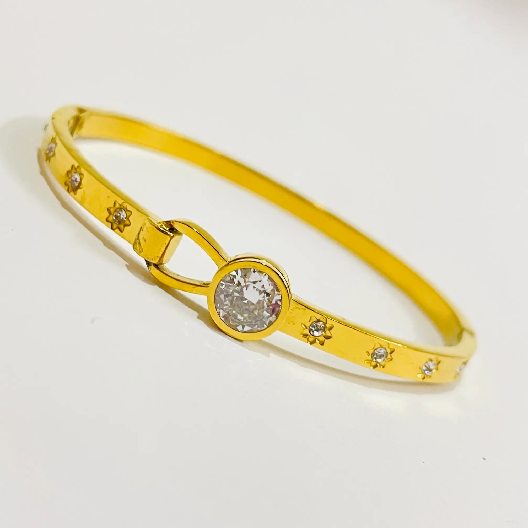 Solitaire Hook Spark Bracelet | Stainless Steel | Anti Tarnish | 18K Gold Plated | Waterproof | Openable