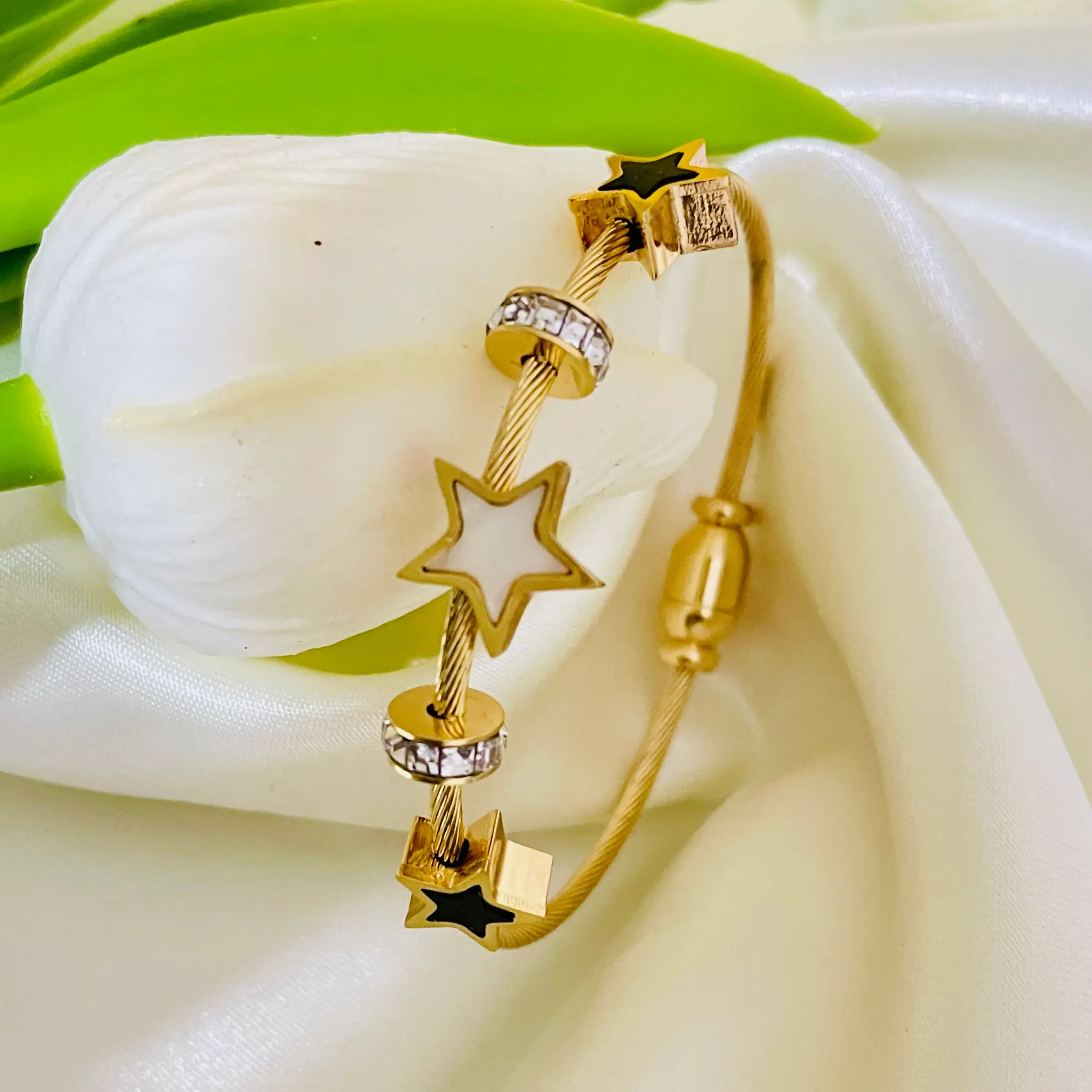 Sparkle Star Bangle Bracelet | Anti Tarnish | Water Resistant | Stainless Steel | Openable