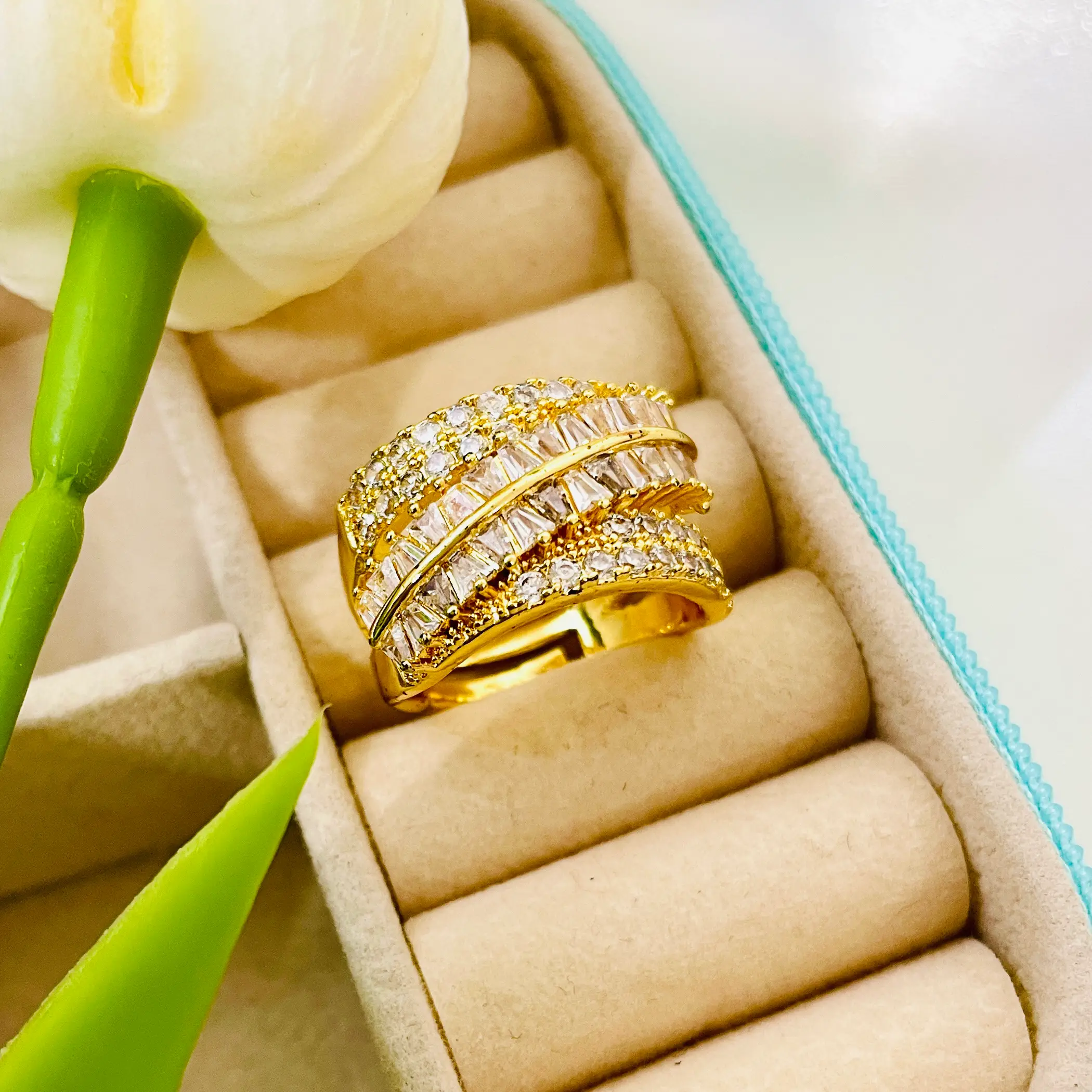 Studded Crossover Ring | Anti Tarnish | Waterproof | 18K Gold Plated | Adjustable