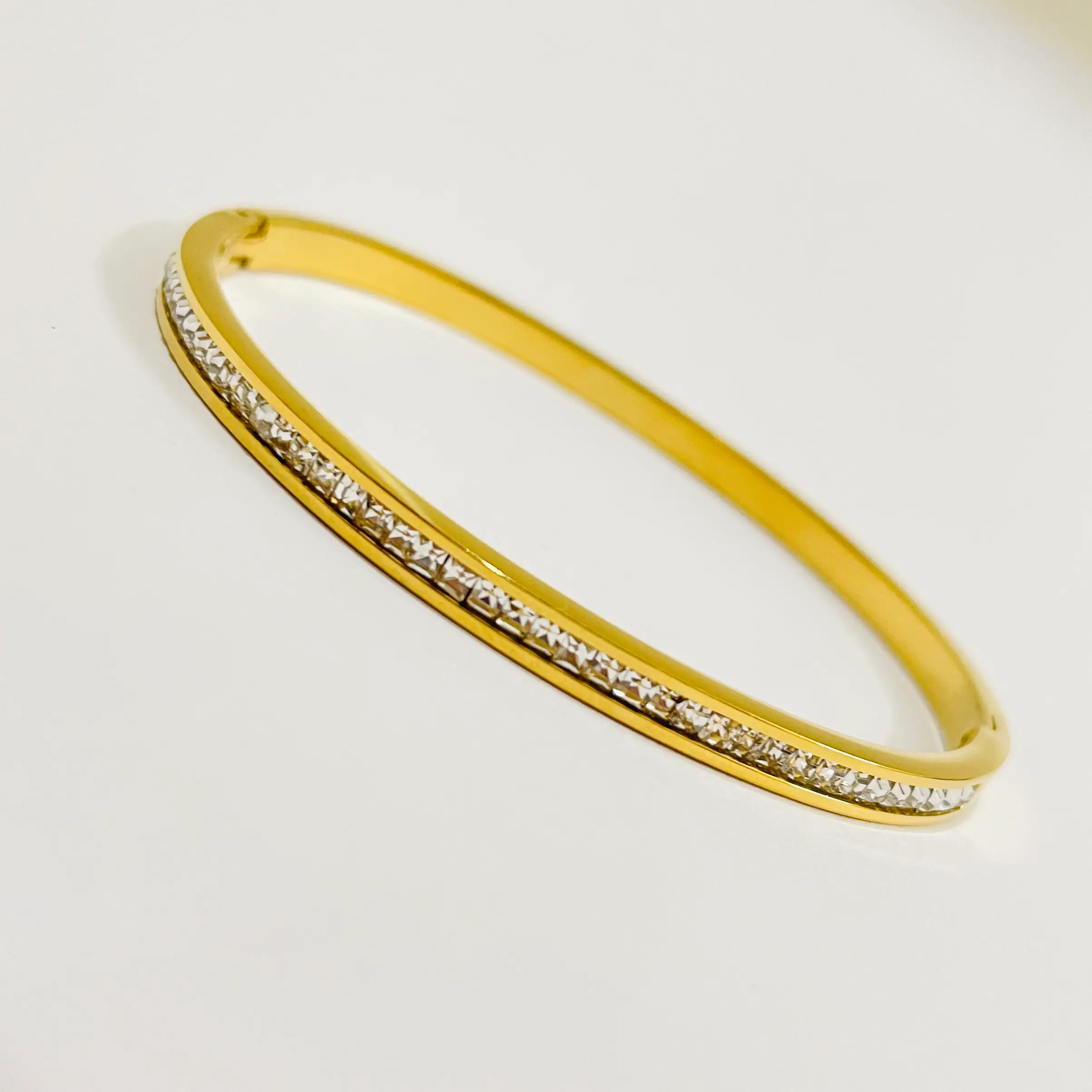 Studded Line Bangle Bracelet | Stainless Steel | Anti Tarnish | 18K Gold Plated | Waterproof | Openable
