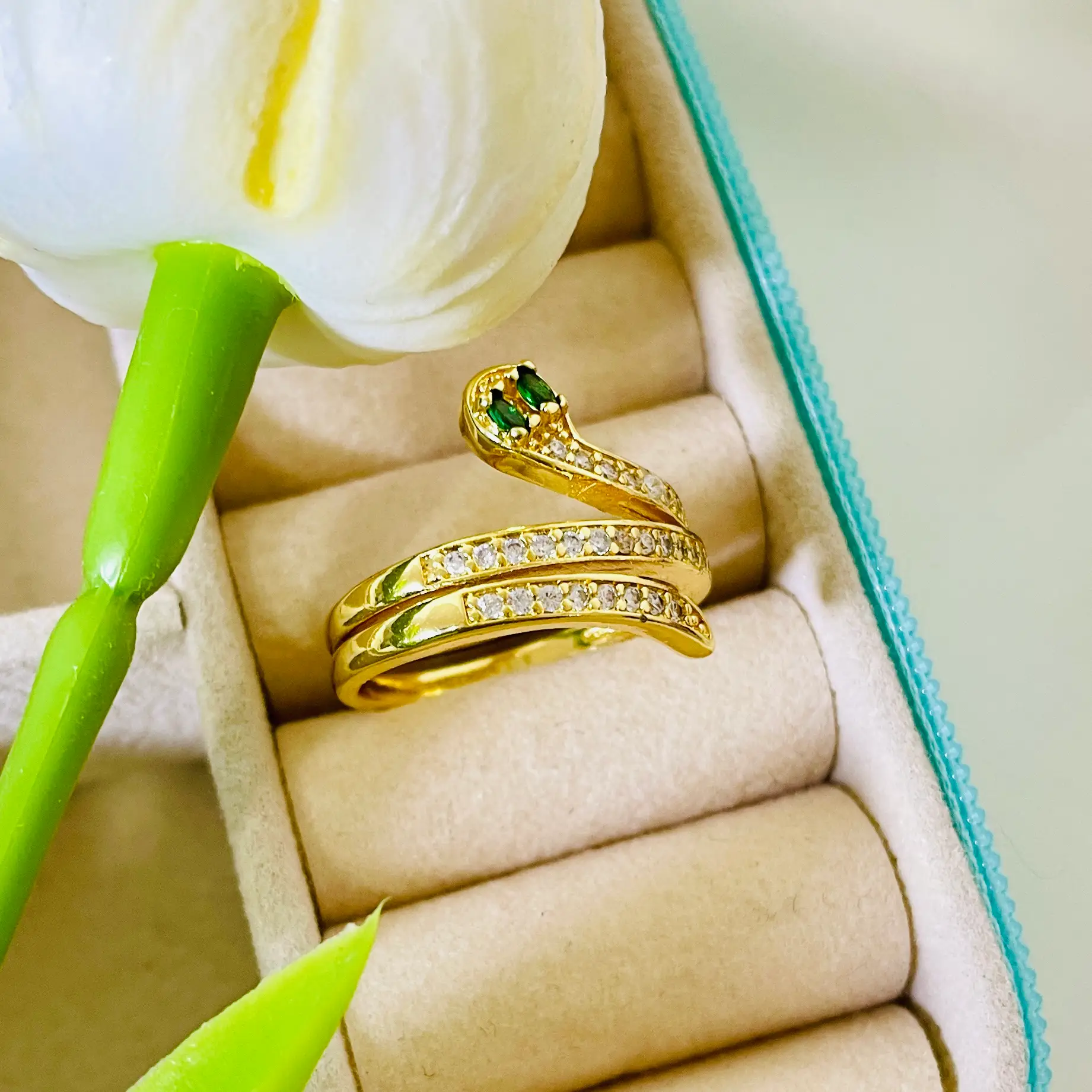 Studded Snake Ring | Anti Tarnish | Waterproof | 18K Gold Plated | Adjustable | Daily Wear