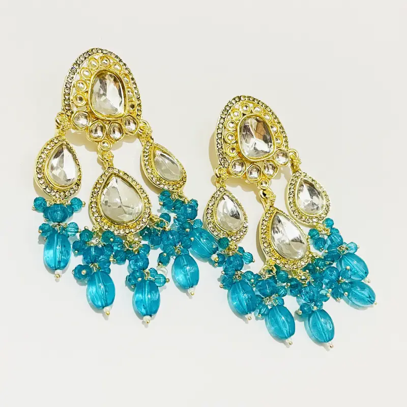 Three drop Kundan Earrings (Aqua)-Perfect for every occasion