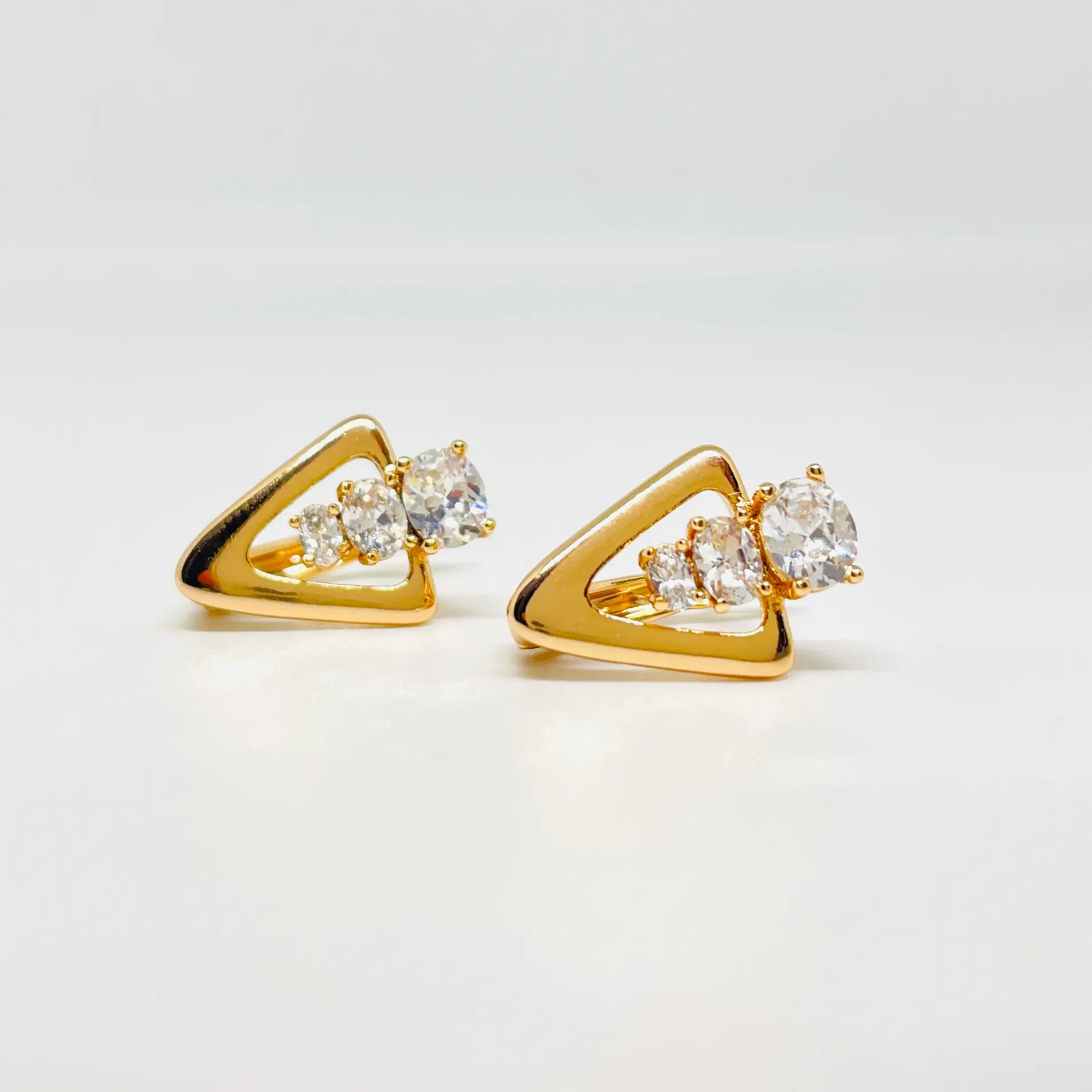 Three Stone Triangle Hoop Earrings | Stainless Steel | | Premium Finishing | Anti Tarnish | Waterproof | 18K Gold Plated