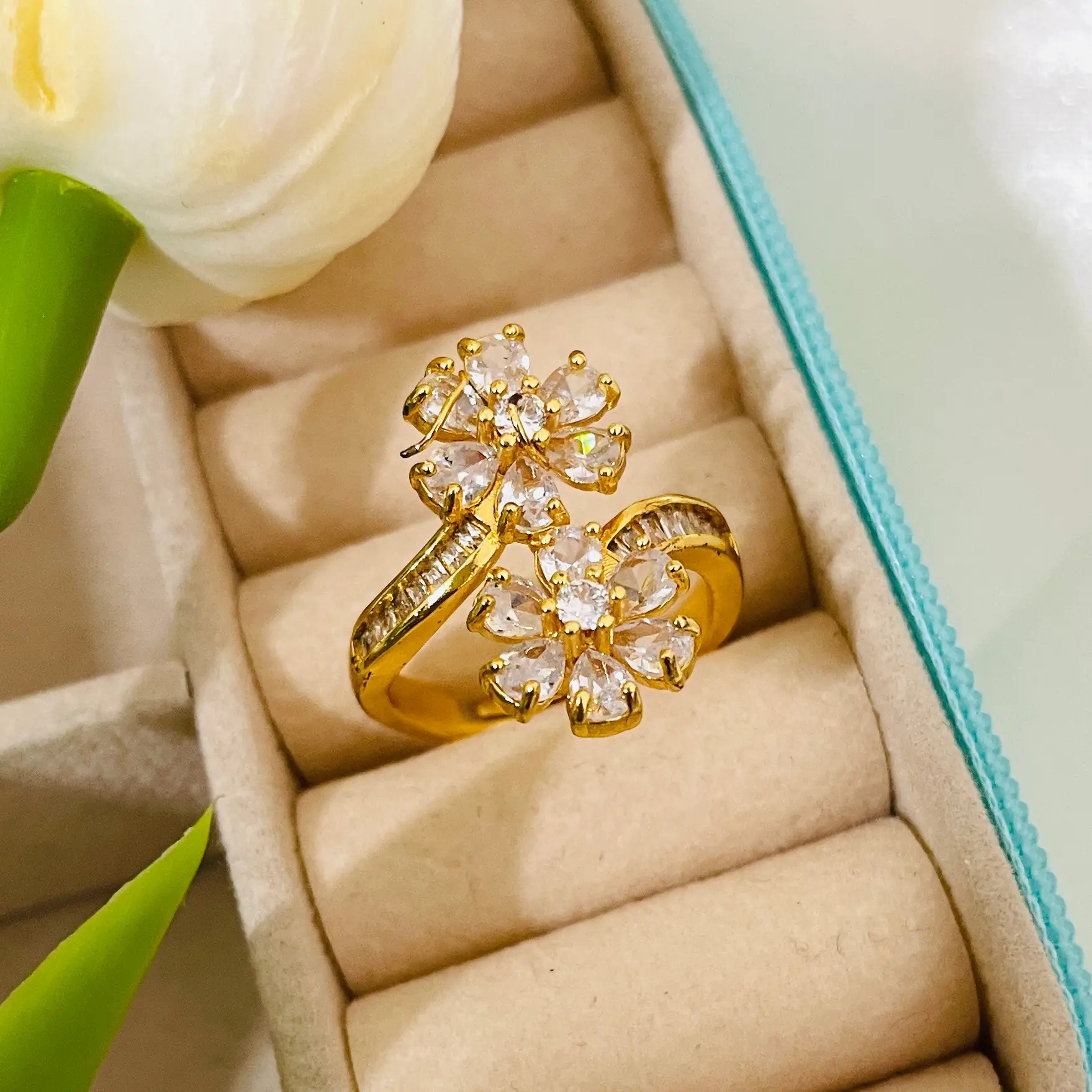 Twins Flora Ring | Anti Tarnish | Waterproof | 18K Gold Plated | Daily Wear
