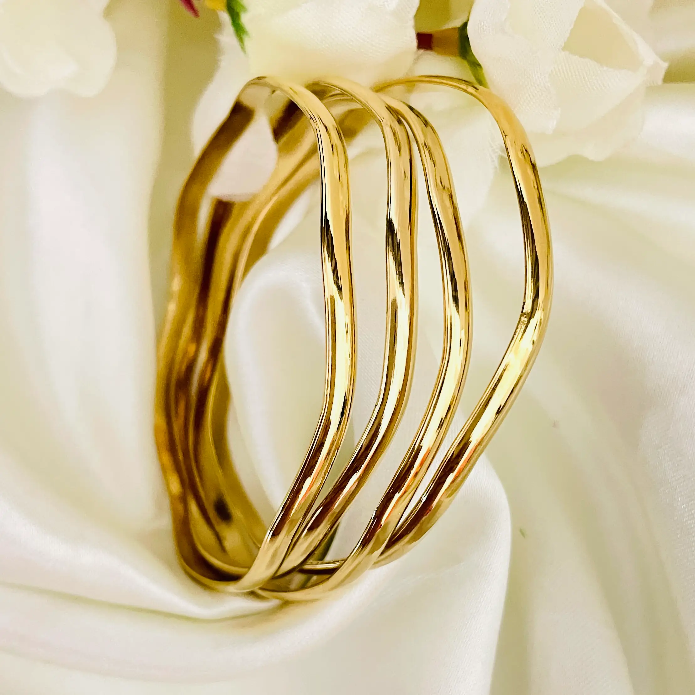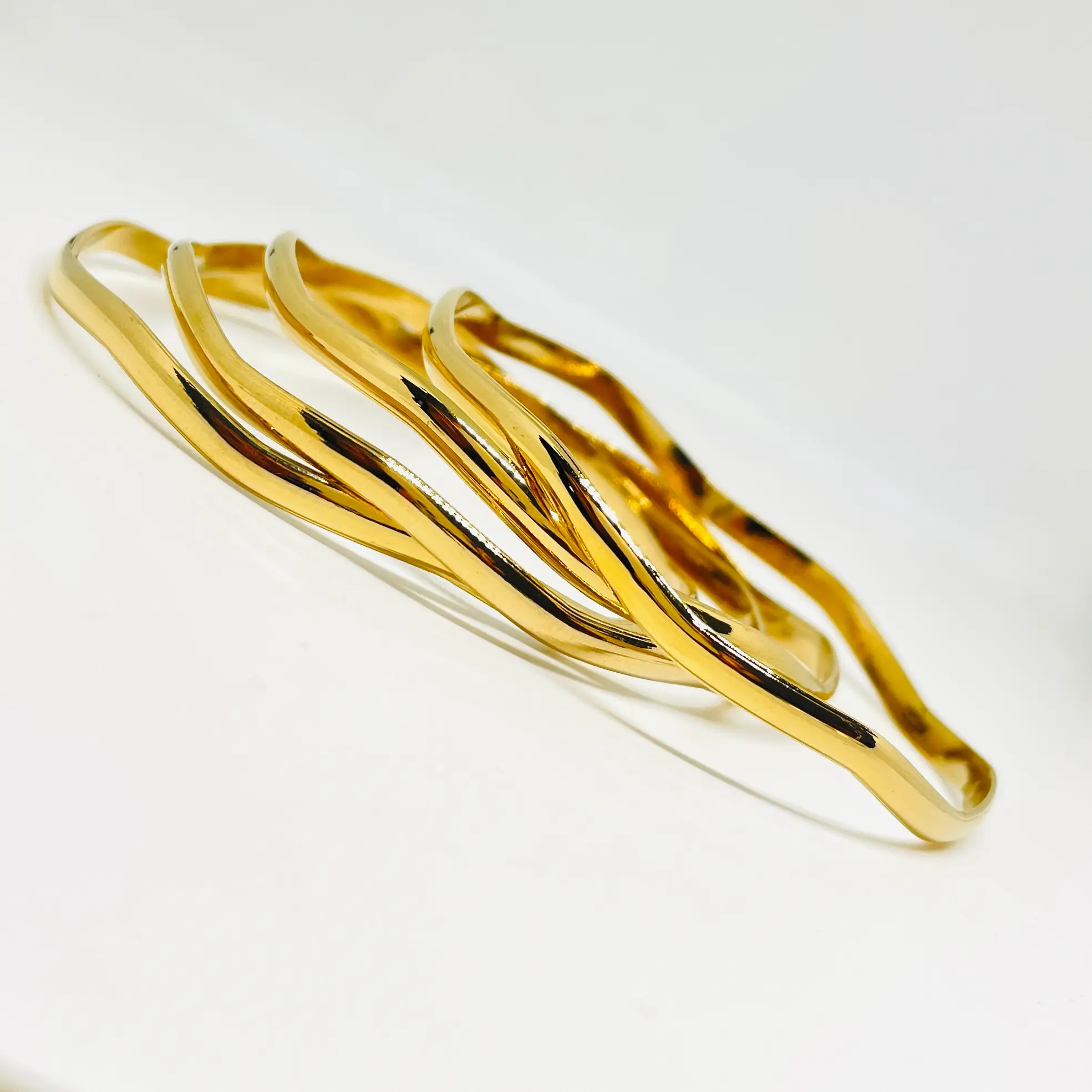 Wavy Gold Bangle Combo | Stainless Steel | Anti Tarnish | 18K Gold Plated | Waterproof
