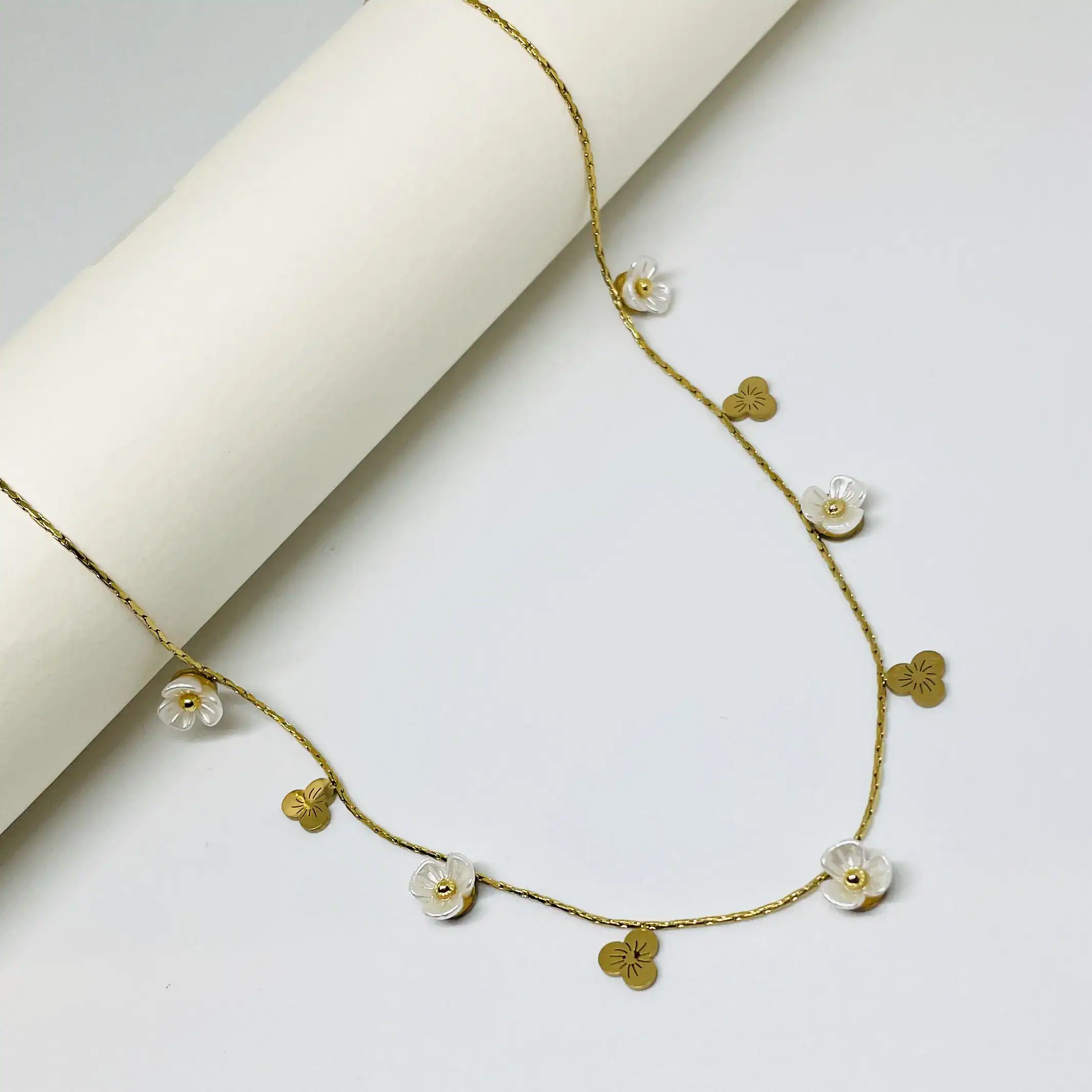 White Bloom Necklace | Premium Quality | Anti Tarnish | Stainless Steel | Waterproof
