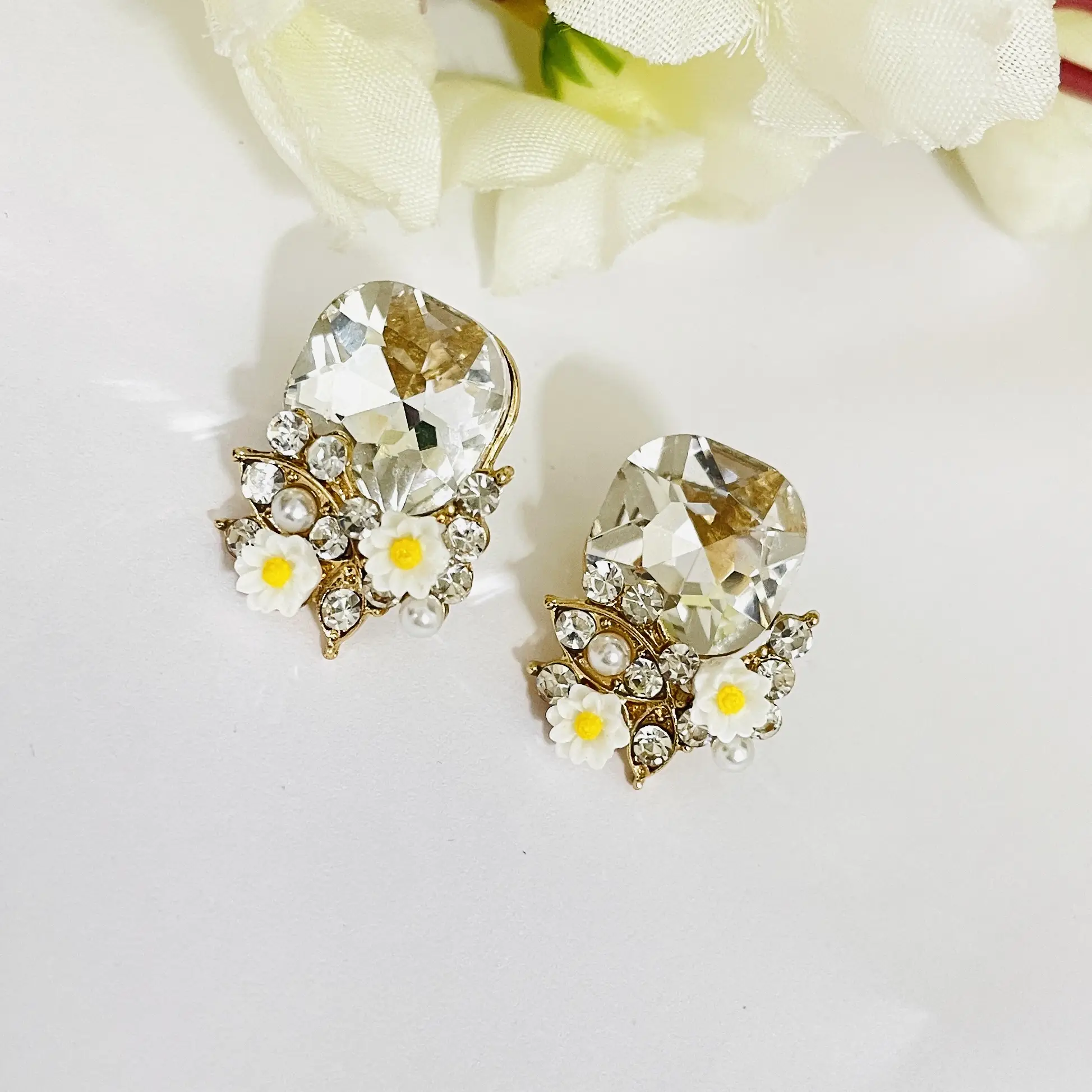 White Stone Daisy Studs | Stainless Steel | Anti Tarnish | Waterproof